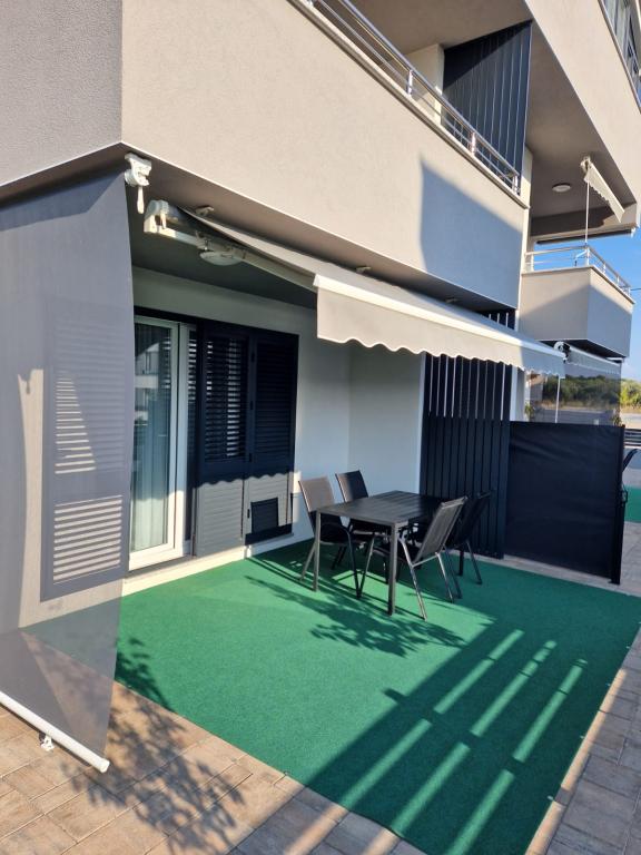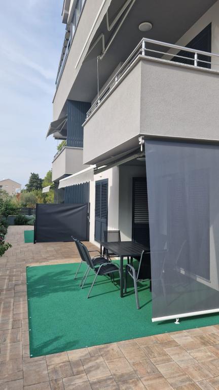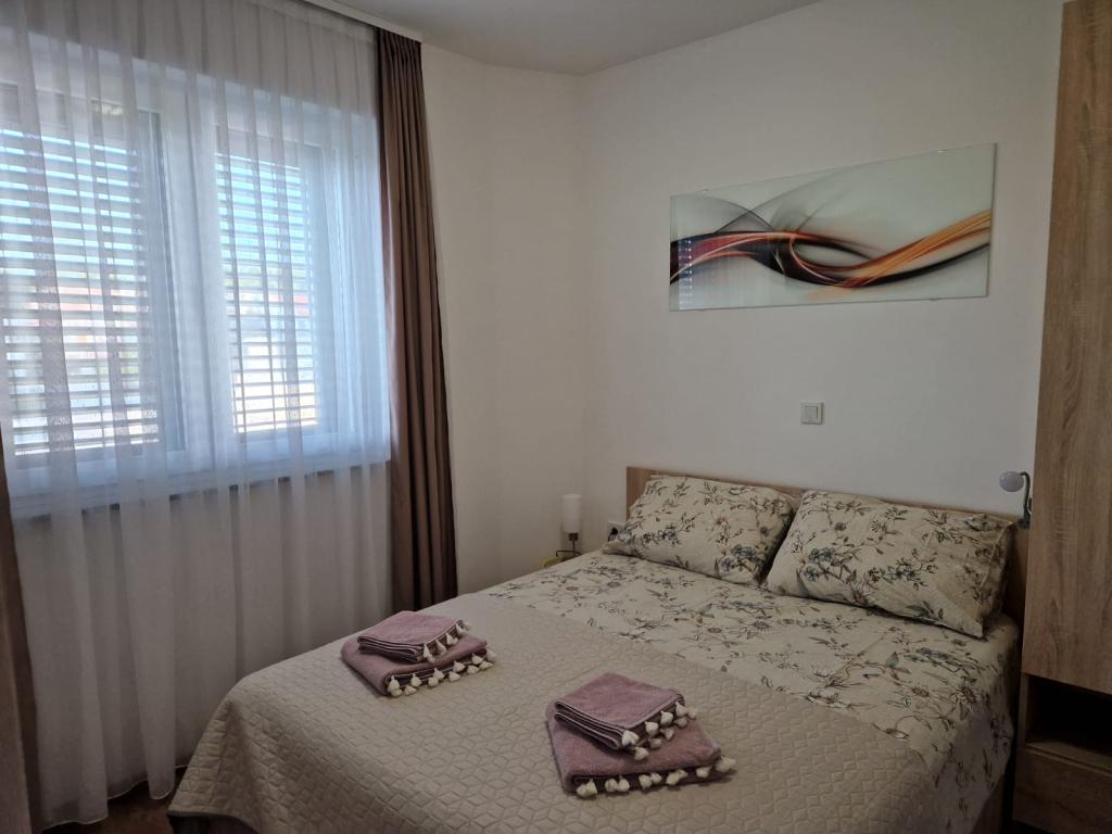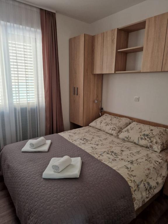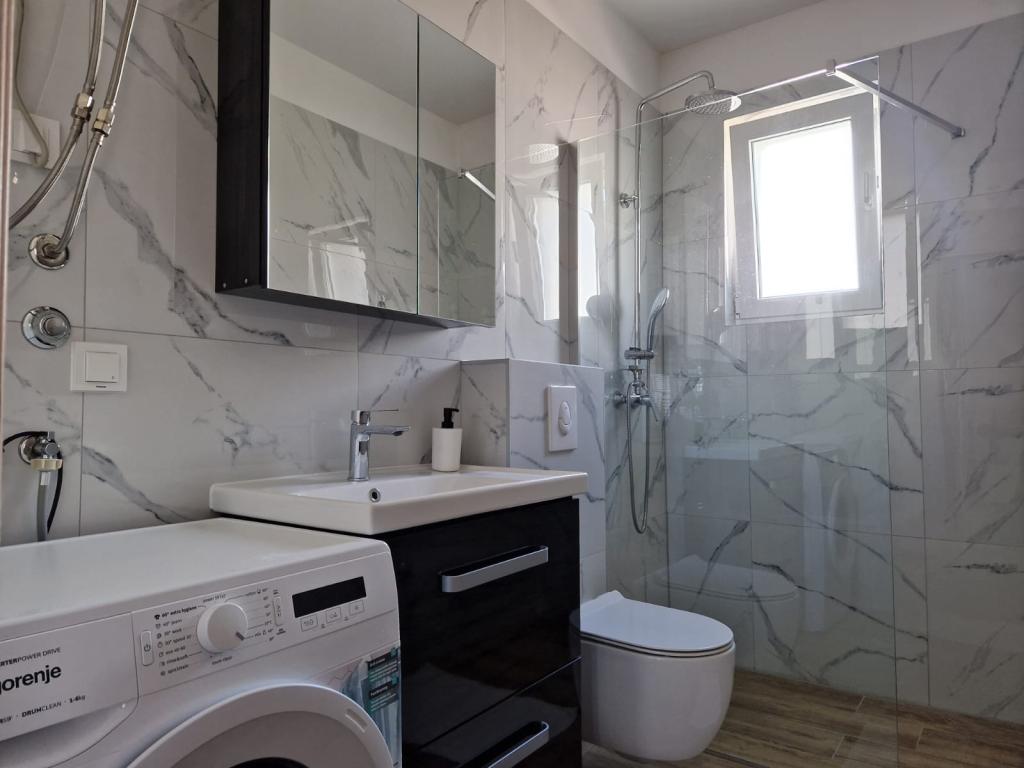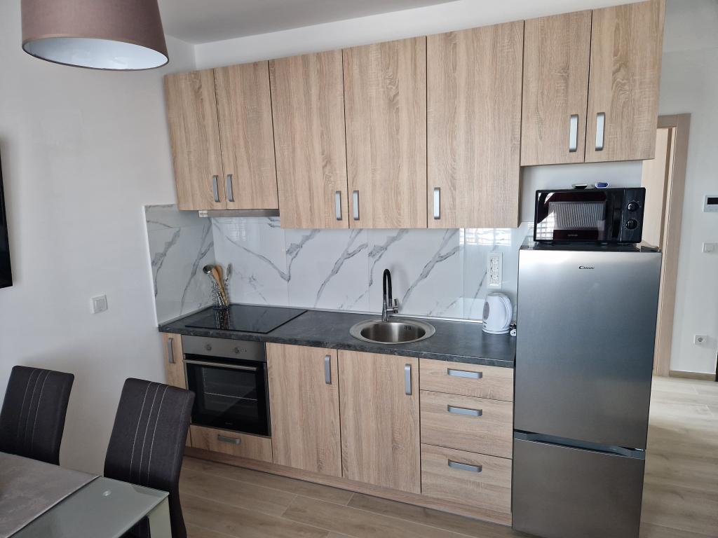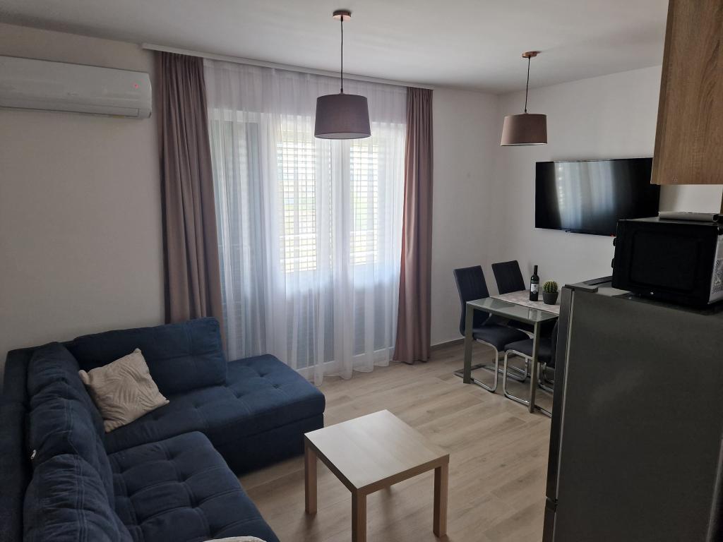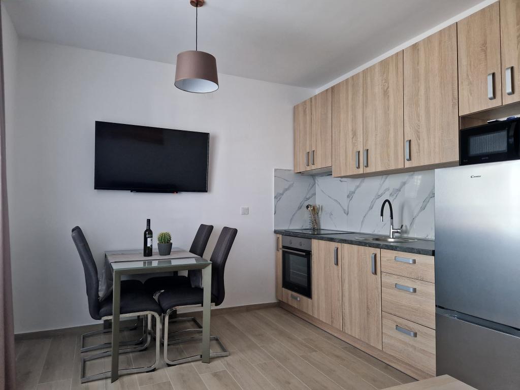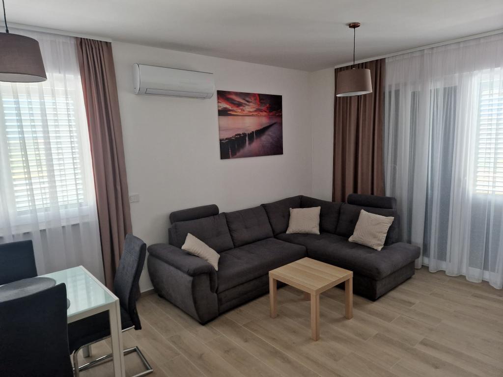 Vila Toni este o clădire nou construită. Apartamentele sunt foarte frumos decorate, moderne și aerisite. Fiecare apartament are o bucătărie complet utilată. În fiecare living există o canapea extensibilă. Camerele sunt dotate cu paturi duble mari si saltele de calitate si confortabile. Toate apartamentele sunt dotate cu aer condiționat și au mașini de spălat. Exista copertine (fata si laterala) pe terase si balcoane. Vila este situata intr-o zona linistita a orasului. In curte este asigurat un loc de parcare. În apropiere există mai multe supermarketuri, plaje, restaurante și cafenele. Este la 10 minute de mers pe jos de centru și la 5 minute de plajă.