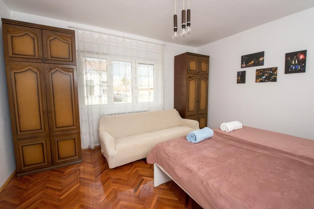 Apartment House of Tea este situat în centrul orașului Bjelovar. Este o casa decomandata foarte confortabila de 75 mp cu living, doua dormitoare, o baie si o bucatarie. Internetul optic este gratuit, viteza este de 1 Gbps prin cablu și aproximativ 300 MBps pe WI-Fi. Într-un dormitor este un pat dublu (140x200 cm), iar în celelalte două paturi de o persoană (90x200 cm). Bucataria este complet utilata (frigider cu congelator, cuptor, aragaz, cuptor). In sufragerie se afla un televizor LED (82 cm) cu un pachet de peste 100 de programe interne si straine, inclusiv pachetul de filme HBO. Este conectat cu Chromecast, astfel încât este posibil să redați conținut multimedia de pe un telefon mobil. Există, de asemenea, DVD-uri, cărți, jocuri de societate. Parcarea este disponibilă în curtea încuiată, există întotdeauna locuri. Este suficient de mare pentru a găzdui o dubă. Locul de joacă pentru copii este la 200 de metri, cel mai apropiat magazin este la 300 de metri, iar centrul orașului este la 500 de metri. Este situat pe drumul principal spre Zagreb, deci este ușor de găsit.