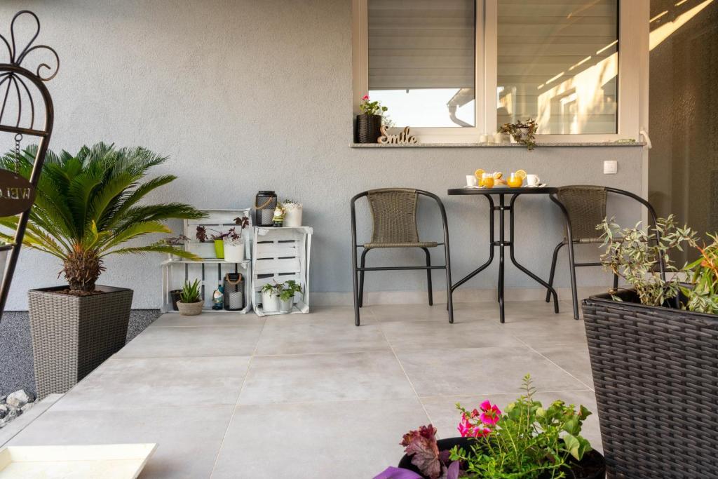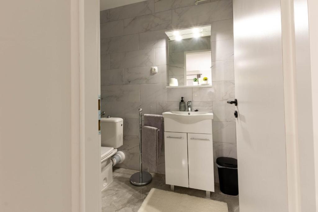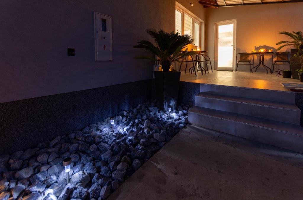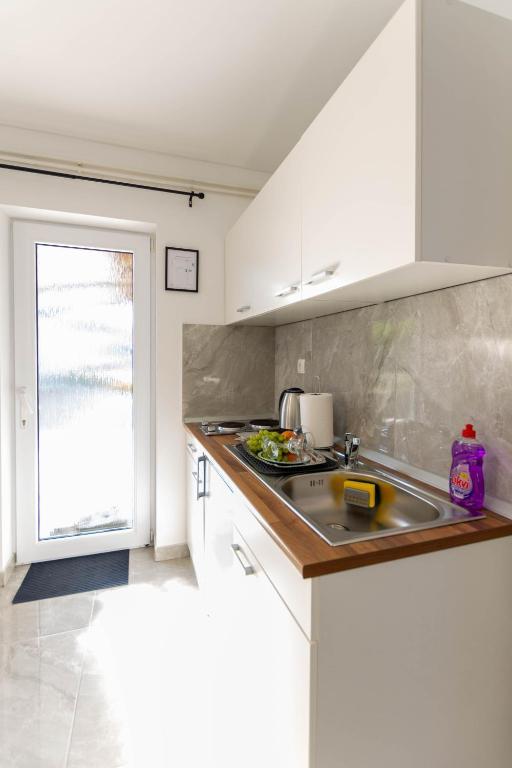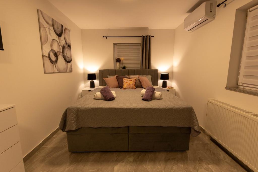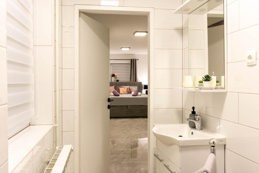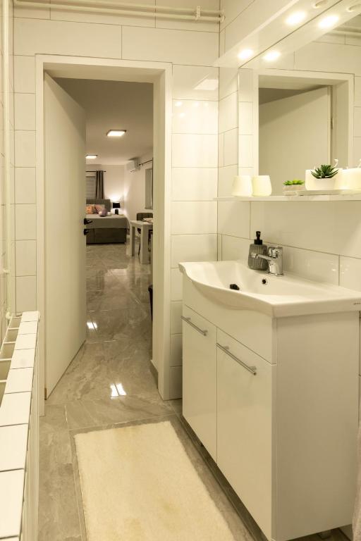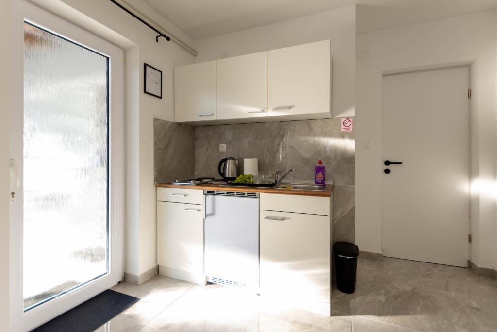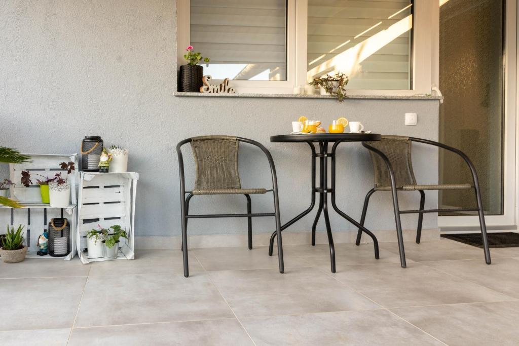 Casa este formata din doua garsoniere. Fiecare apartament studio conține 1 dormitor cu bucătărie complet utilată, 1 baie, lenjerie de pat, prosoape, săpunuri, geluri de duș, șampoane, un TV cu ecran plat, o terasă comună pentru a savura cafeaua cu o grădină mare. Apartamentul este situat pe o strada linistita la aproximativ 500 m de centrul orasului si este ascuns in teren. O curte și o grădină mare separă apartamentul de drum, ceea ce permite o ședere liniștită în apartament și pe terasă. Există o parcare pentru mașini private în curte.
