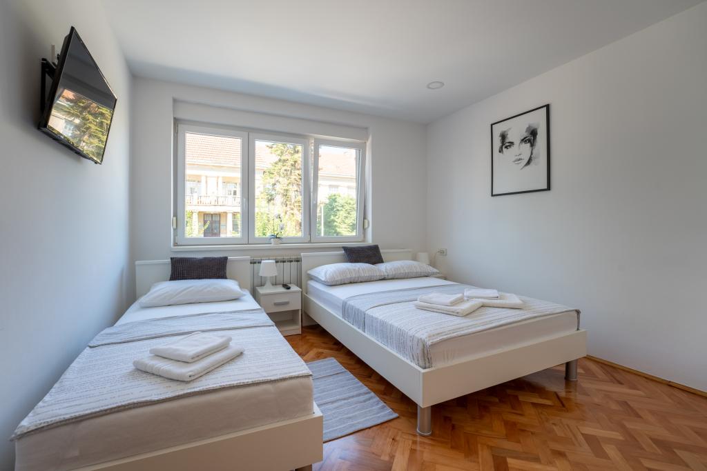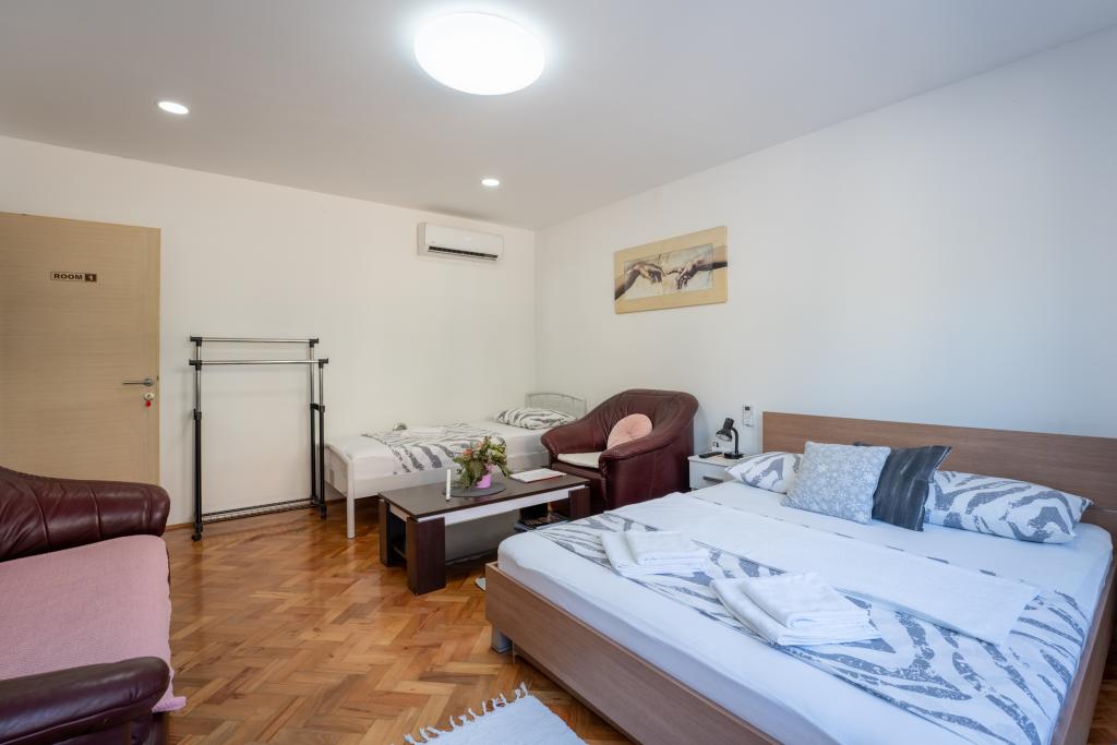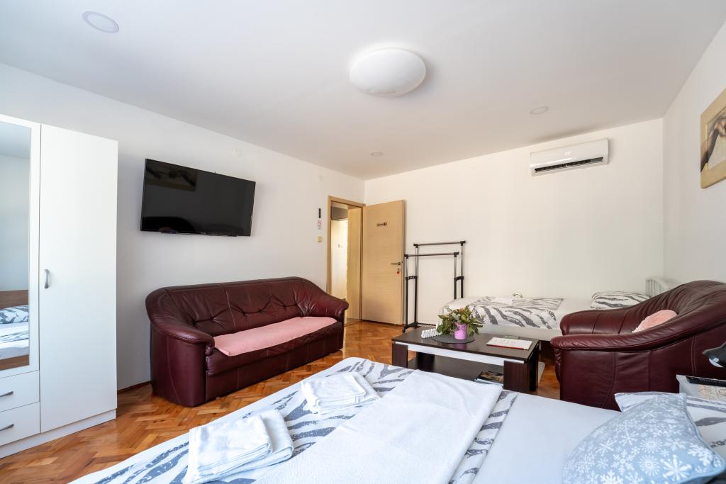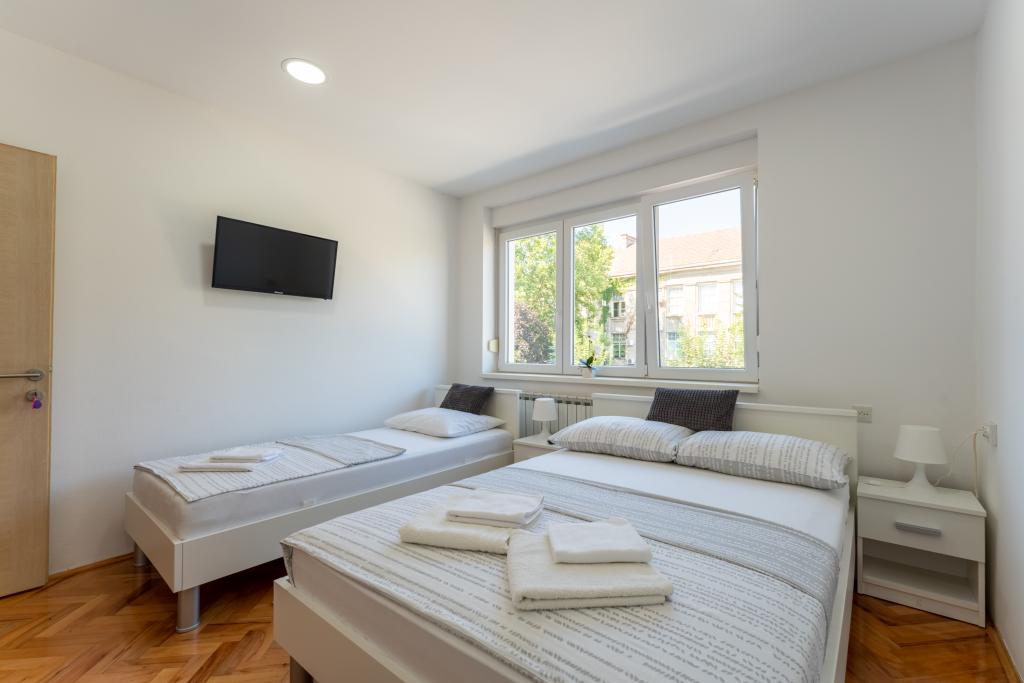 Camere Matic A. Mihanovića 13C, camere complet și modern mobilate în centrul orașului Bjelovar, vizavi de spital. WIFI gratuit, parcare GRATUITĂ, grătar gratuit, prima zonă de oraș. Fiecare cameră are 3 paturi și o baie separată cu toaletă, bucătărie, TV LED cu ecran plat și toate camerele au iluminat LED. Acces gratuit la internet WIFI. Băile sunt dotate cu mașină de spălat. Casa dispune de parcare privata gratuita. Camerele sunt dotate cu aparate de aer conditionat care nu sunt taxate. Sunt incalzite cu centrala termica si racite cu aer conditionat. Utilizarea gratuită a grătarului, avem un foișor pentru ca oaspeții noștri să se cazeze cu posibilitatea de a folosi 9 scaune și o masă. Facilitatea este dotată cu jacuzzi și saună cu infraroșu. Utilizați cu acord special și plată suplimentară. Suntem înregistrați ca un centru de biciclete și bad și avem 5 biciclete și 3 scutere la dispoziție. Dacă ajungeți în Bjelovar cu mijloacele de transport în comun, vă vom ridica și vă vom duce gratuit la unitatea noastră. Bine ați venit la noi!