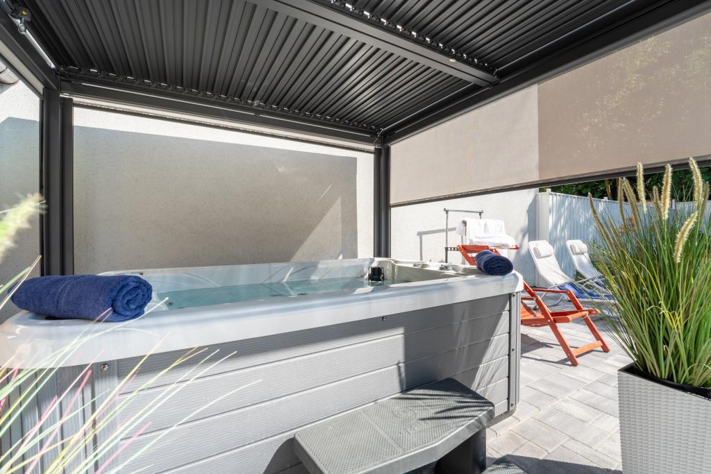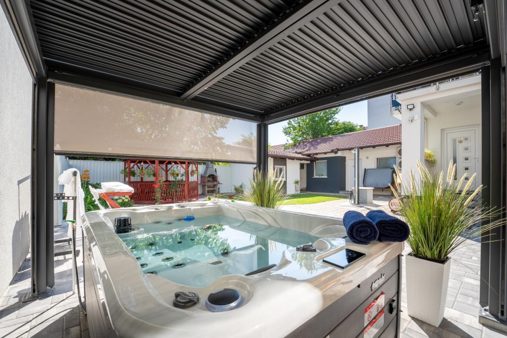 Taxa de rezidenta este inclusa in pret.Foișor, jacuzzi, saună, biciclete, scutere.
