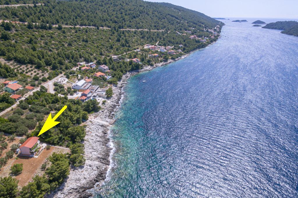 Apartament Maja Karbuni, apartamente Korcula, casă lângă mare cu 1 apartament. Aproape de plajă, tip Žal. Peisaj pitoresc, priveliște frumoasă, intimitate - fără vecini. Grătar, parcare. Locație frumoasă și liniștită. Casă într-o zonă retrasă, cu o priveliște frumoasă asupra mării deschise și a insulițelor.