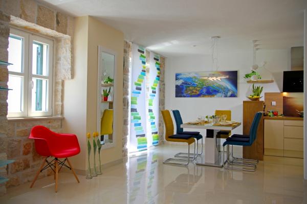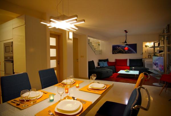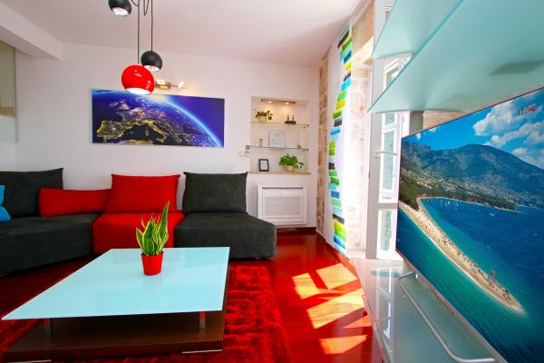 Pentru o vacanță de neuitat, am pregătit apartamentul duplex de lux „ALLURE” - un apartament complet nou și modern într-o casă dalmată atractivă. Este situat intr-o locatie exceptionala in imediata apropiere a marii si a centrului orasului. Bucurați-vă de un apartament superb echipat, cu două balcoane și o vedere frumoasă la mare. Apartament duplex de lux, 100 m2, ofera cazare pentru 4-5 persoane. La primul etaj există un living spațios, bucătărie și sufragerie, două balcoane cu vedere la mare și o baie mare. La etajul doi, există două dormitoare cu băi private și, de asemenea, o vedere minunată la mare. Așteptăm cu nerăbdare sosirea dumneavoastră!