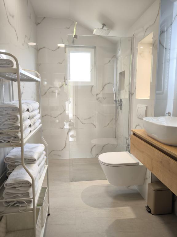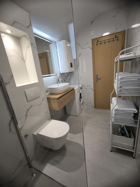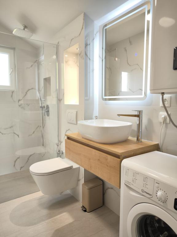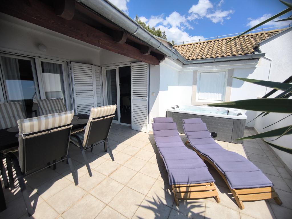 Apartamentul Dreams of Bol este situat în Bol, pe insula Brač. Se află la 10 minute de mers pe jos de centru și este situat într-o zonă liniștită. Apartamentul are loc de parcare propriu, o vedere neobstrucționată asupra insulei Hvar, a faimoasei plaje Zlatni rat și a celui mai înalt vârf al insulelor dalmate, Vidova gora (778 m). La doar 50 de metri sub unitatea de cazare se află un restaurant, 2 supermarketuri, o pizzerie și o stație pentru trenul turistic care merge spre plaja Zlatni Rat. Acest apartament oferă două dormitoare, unul cu pat dublu și unul cu paturi twin, care pot fi unite la cerere. În living există o canapea extensibilă care poate fi transformată într-un pat confortabil pentru 1-2 persoane. În plus, oferim o bucătărie complet utilată, o baie cu mașină de spălat și o terasă spațioasă (protejată de priviri) cu o masă în aer liber și șezlonguri confortabile și un jacuzzi. Apartamentul este dotat cu aer condiționat, cu două unități de aer condiționat în living și într-un dormitor, acces WIFI și televizor LED. De asemenea, avem spațiu suplimentar pentru depozitarea bicicletelor. Curățenie unică 50 €