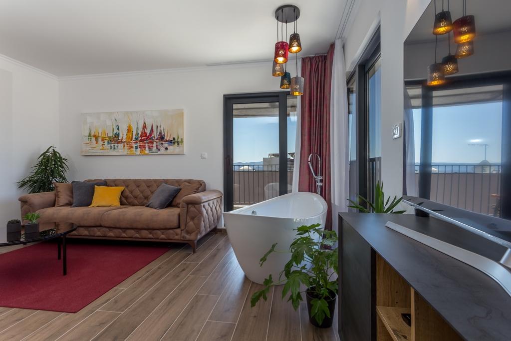 Taxa de rezidenta este inclusa in pret. Document de confirmare a rezervării la rezervareApartamentul Pleasure este conceput pentru a fi folosit în doi, nu doar vara, ci tot timpul anului, pentru că v-am imaginat într-o cadă cu hidromasaj în mijlocul camerei de zi, care oferă o priveliște frumoasă și liniștitoare. Și încălzire prin pardoseală, saună, pat King Size de calitate superioară 200x200cm, cabină de duș cu halate de baie, două televizoare Smart, Netflix, seif, prosoape de plajă, bucătărie complet utilată cu aparat de cafea Dolce Gusto și opțiunea de a alege un mic dejun de calitate superioară... Totul este subordonat dumneavoastră și vă aparține să VĂ BUCURAȚI!