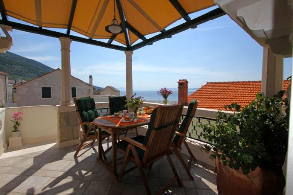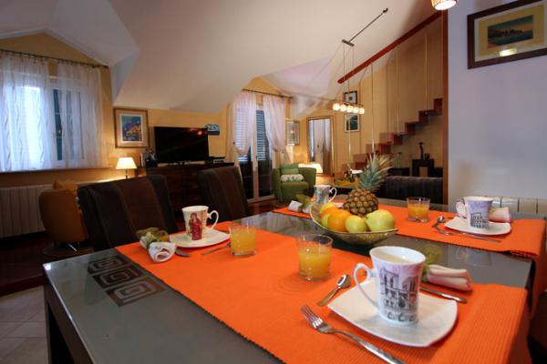 Apartamentul superb echipat "Splendid" este situat la ultimul etaj al unei case din piatra dalmata, in imediata apropiere a marii si a centrului orasului. Cu interiorul decorat elegant și echipat superb și locația sa atractivă, reprezintă o alegere unică pentru o vacanță de neuitat. Apartamentul oferă cazare pentru 4-5 persoane și include două dormitoare, un living cu bucătărie și sufragerie, o baie și două terase cu vedere impresionantă la mare.
