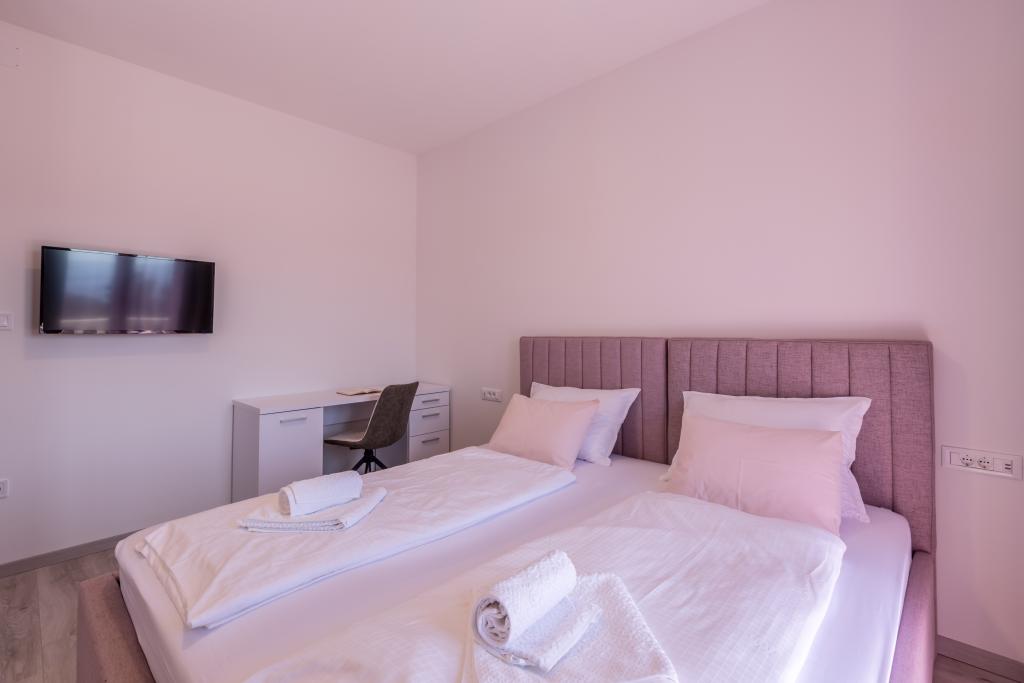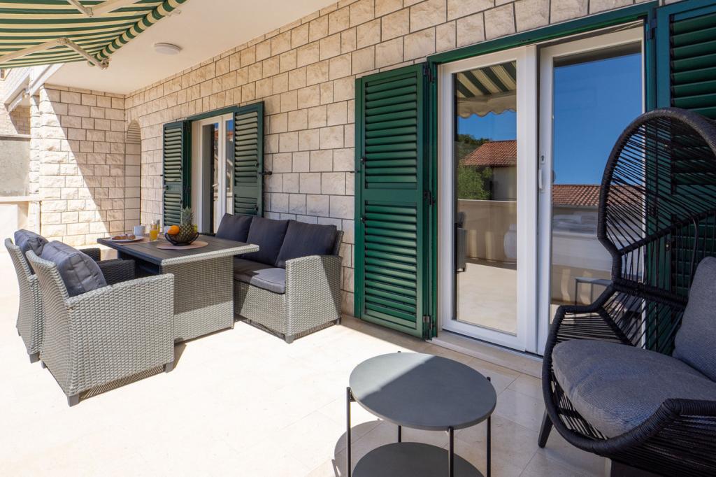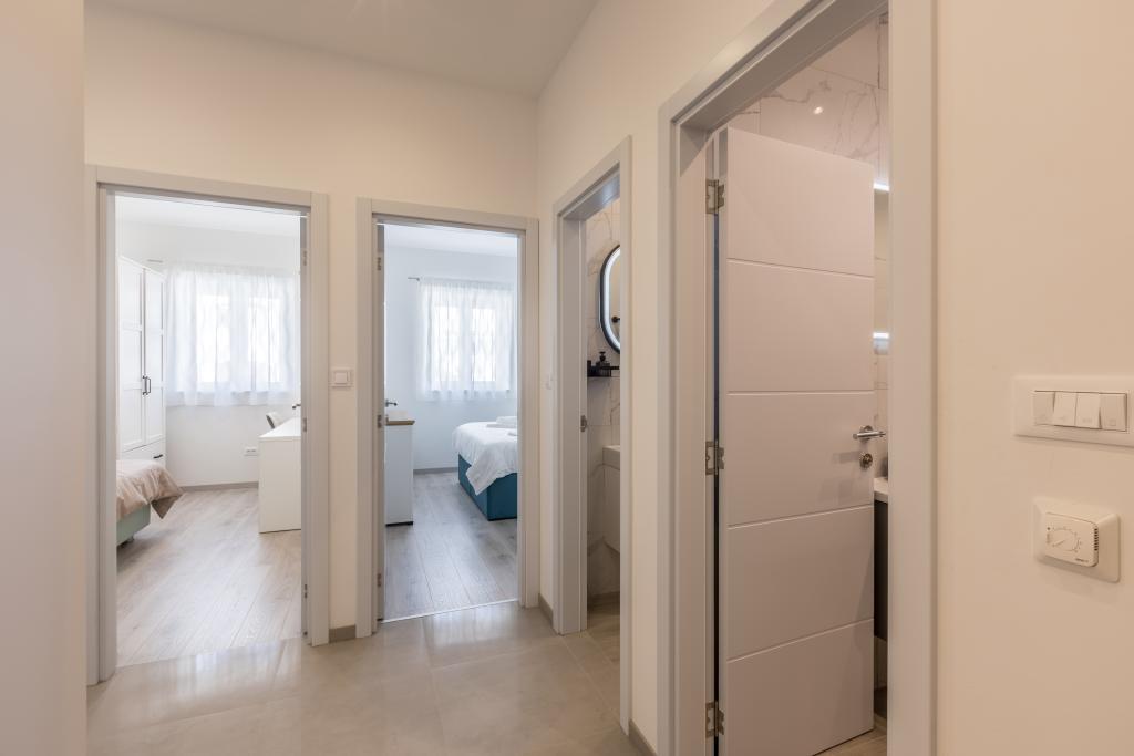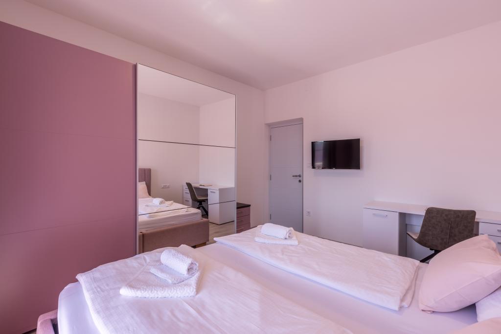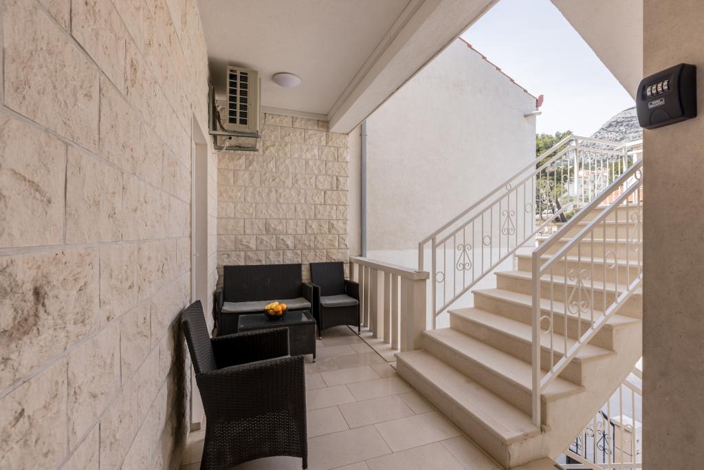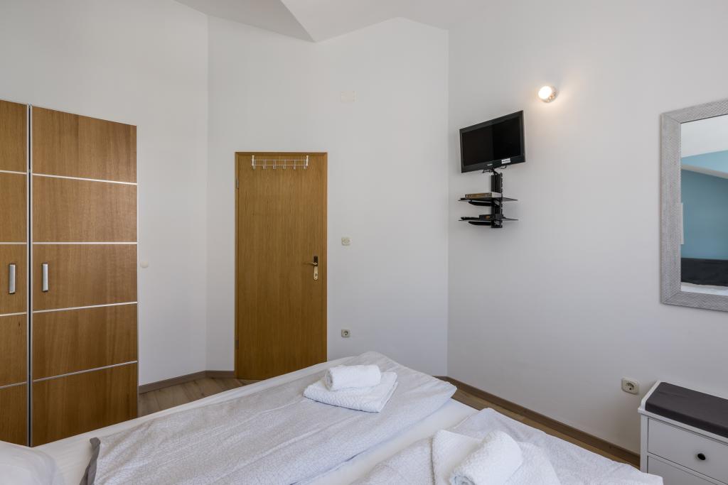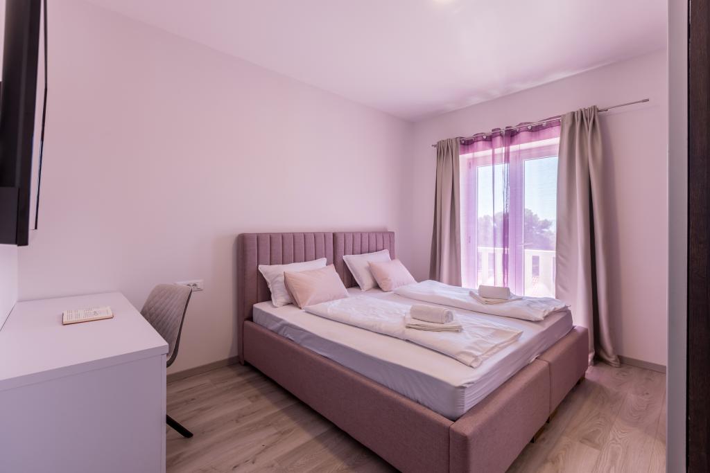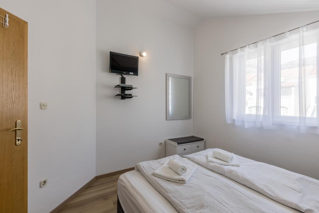 Apartamentele Jelavic sunt situate în partea de vest a Bolului, chiar deasupra promenadei până la plaja „Zlatni rat” (Promenadă). Casa este la aproximativ 150m de mare și de primele plaje. Este la câteva minute de mers pe jos de centrul orașului Bol, astfel încât oaspeții noștri să poată obține cu ușurință și rapid alimente și servicii de la poștă, bancă, agenții de turism, poliție, ambulanță etc. Nu departe de casă se află majoritatea restaurantelor, cafenelelor Bol. și cluburi de noapte. Deși de la casa noastră la plajă „Șobolanul Zlatni” (aprox. 2000m) conduce o frumoasă promenadă pe malul mării, din centru, pentru această plajă deosebit de frumoasă și de renume mondial, există o linie regulată de bărci. Casa noastră este construită în stil clasic dalmațian, cu fațade din piatră albă Brac, terase pavate pentru a locui în afara apartamentului cu garduri metalice și coloane de piatră. 20 de ani de experiență în turism și îmbunătățirea constantă a serviciilor plasează apartamentele noastre în topul ofertei de cazare privată din Bol, pe insula Brac.