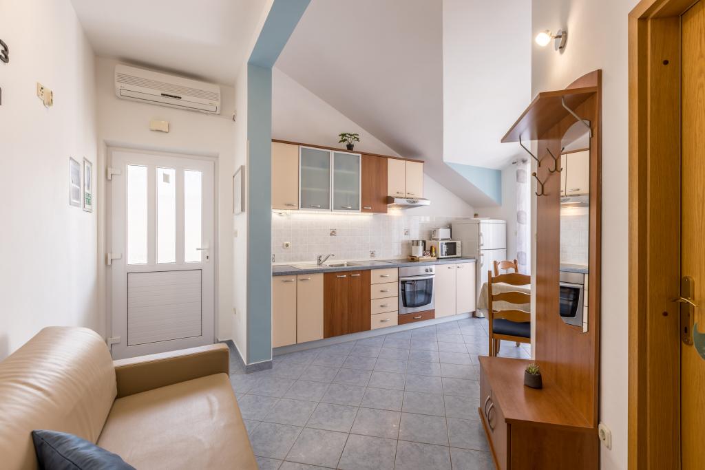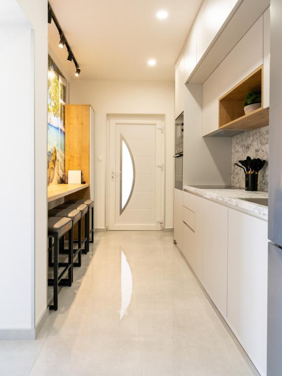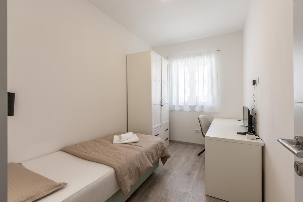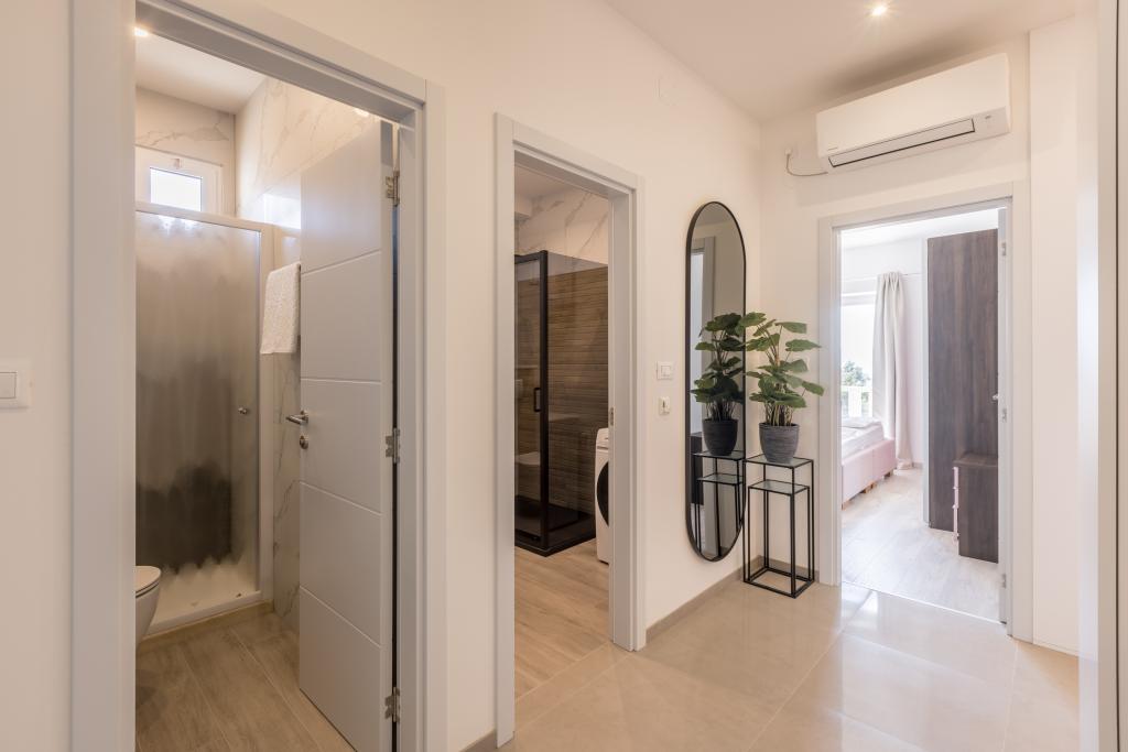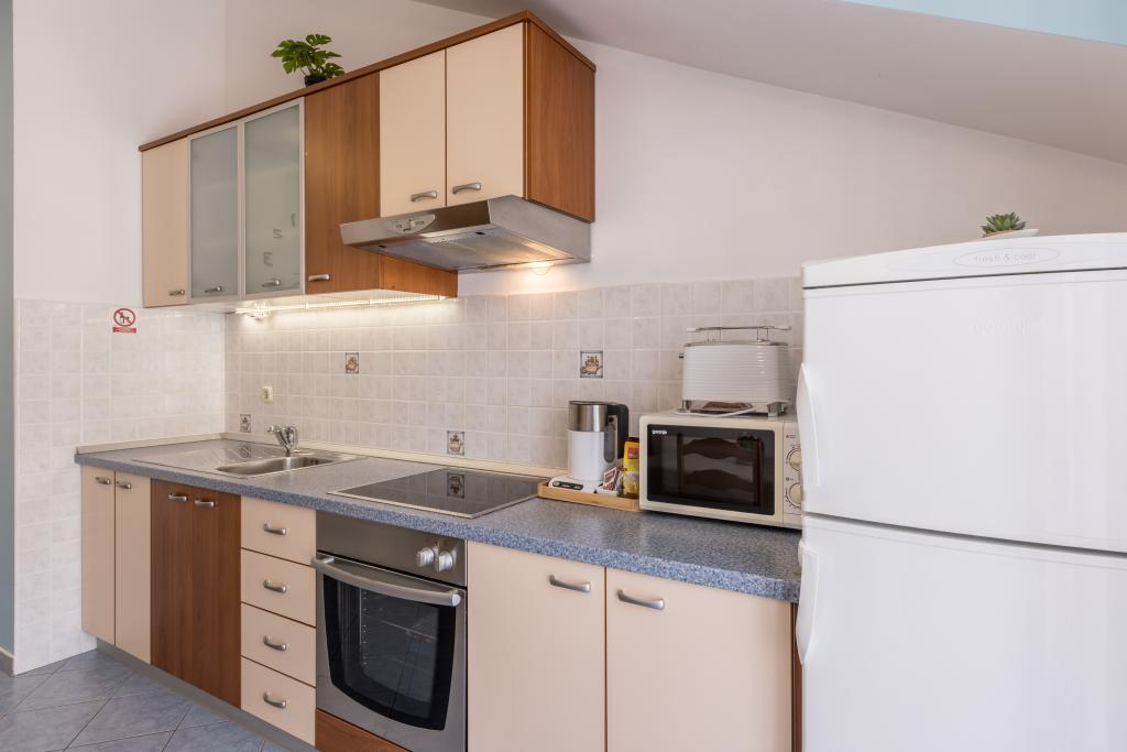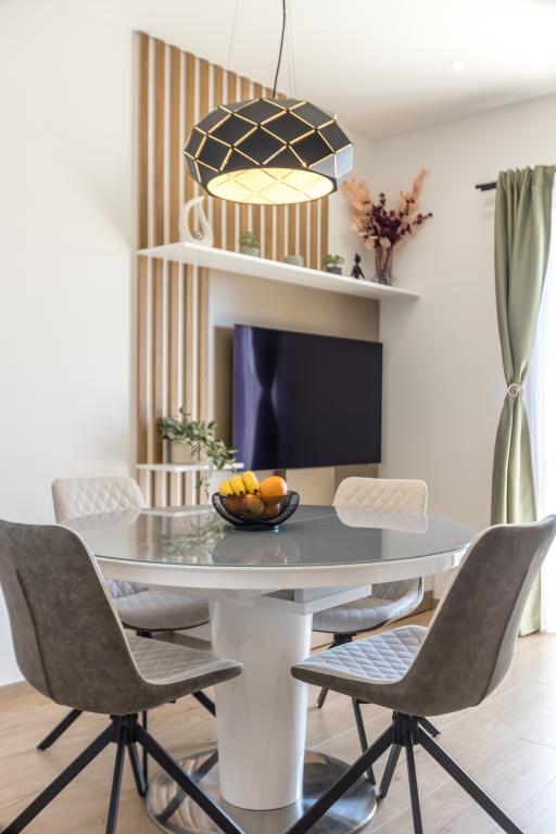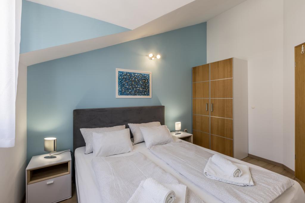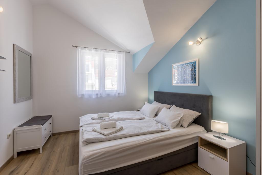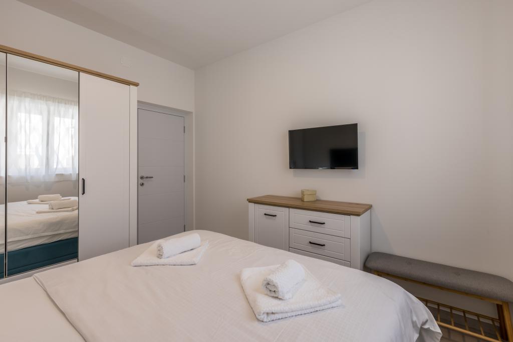 Apartamentele Jelavic sunt situate în partea de vest a Bolului, chiar deasupra promenadei până la plaja „Zlatni rat” (Promenadă). Casa este la aproximativ 150m de mare și de primele plaje. Este la câteva minute de mers pe jos de centrul orașului Bol, astfel încât oaspeții noștri să poată obține cu ușurință și rapid alimente și servicii de la poștă, bancă, agenții de turism, poliție, ambulanță etc. Nu departe de casă se află majoritatea restaurantelor, cafenelelor Bol. și cluburi de noapte. Deși de la casa noastră la plajă „Șobolanul Zlatni” (aprox. 2000m) conduce o frumoasă promenadă pe malul mării, din centru, pentru această plajă deosebit de frumoasă și de renume mondial, există o linie regulată de bărci. Casa noastră este construită în stil clasic dalmațian, cu fațade din piatră albă Brac, terase pavate pentru a locui în afara apartamentului cu garduri metalice și coloane de piatră. 20 de ani de experiență în turism și îmbunătățirea constantă a serviciilor plasează apartamentele noastre în topul ofertei de cazare privată din Bol, pe insula Brac.