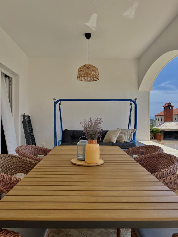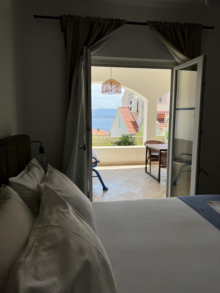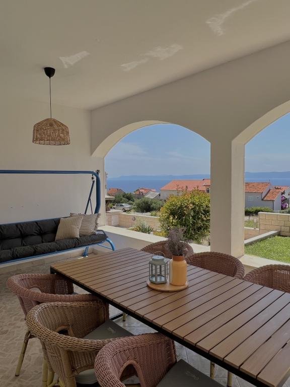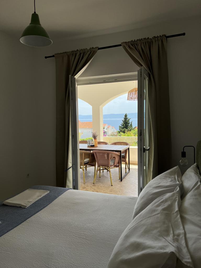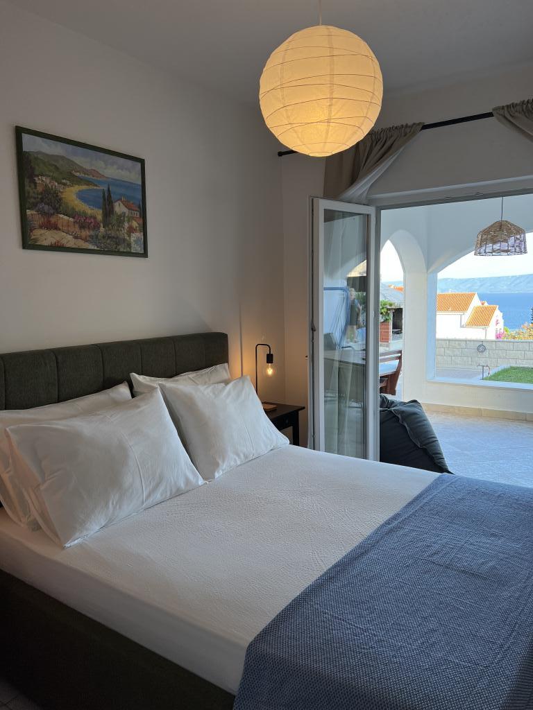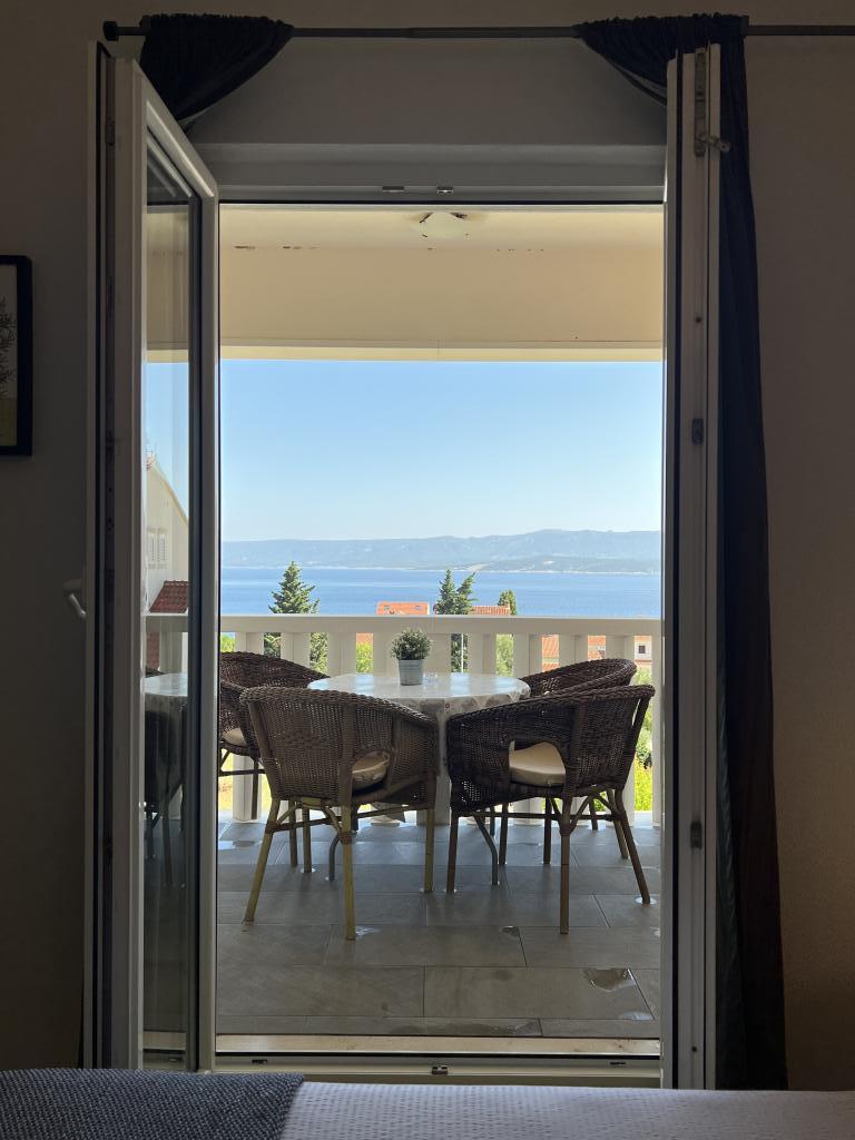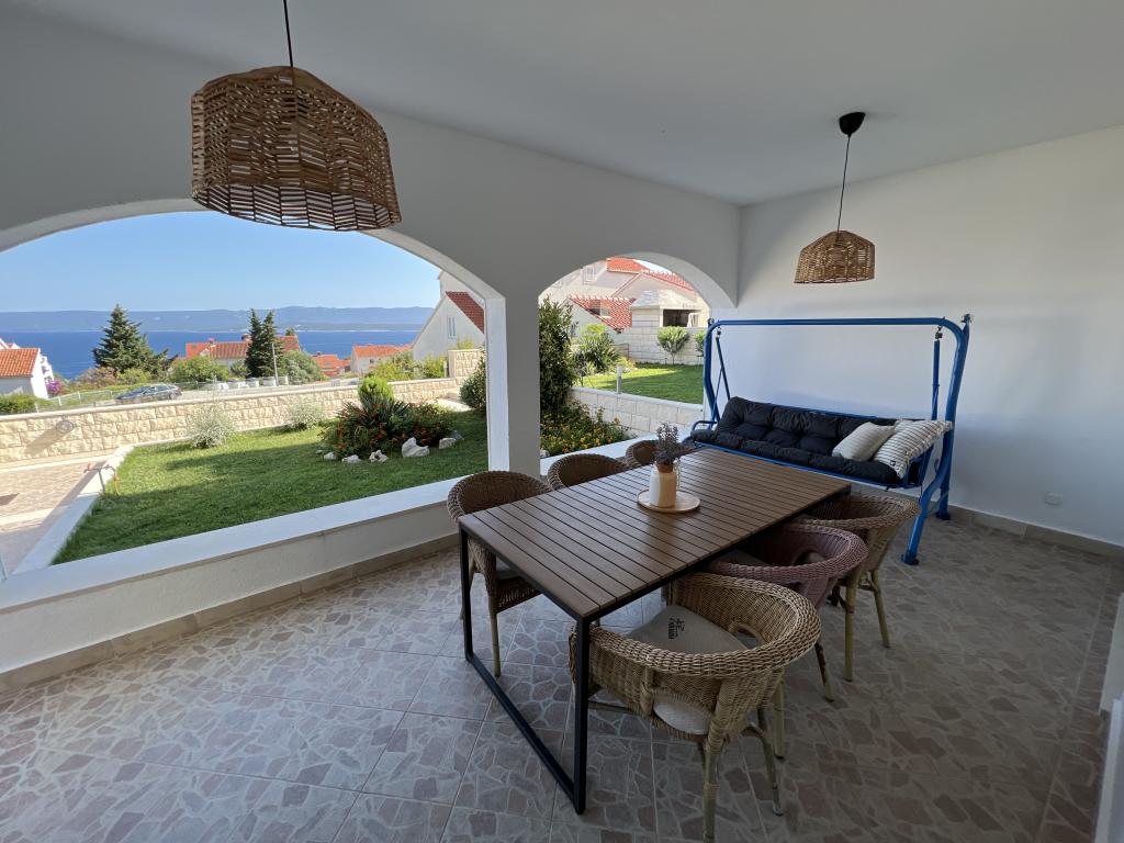 Casa este situată în mijlocul orașului Bol, dar într-o poziție puțin ridicată, astfel încât să fie în afara aglomerației urbane și a inevitabilului haos de parcare, dar totuși la doar 6 minute de mers pe jos până în centrul vechi al orașului Bol, la 15 minute. plimbare la minunatul „Război de Aur”. Casa are o curte mare cu vedere la mare. In curte se afla un semineu pentru gratar, de care se pot bucura toti oaspetii casei.