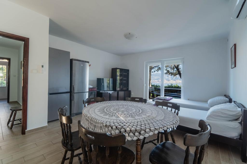 Un loc foarte frumos, împrejurimi liniștite, cicadii și păsările cântând dimineața. Apartament pe primul etaj, terasă spațioasă, funcțională și curată, cu vedere minunată la mare și munți. Apartamentul de la parter are o grădină mare, deci este cu siguranță potrivit pentru familiile cu copii mici. La plaja cea mai apropiată câteva minute, în zonă o mulțime de golfuri fermecătoare. Hosts foarte frumos, deschis la nevoile oaspeților și extrem de utile. Vă mulțumim pentru o vacanță minunată și recomandăm cu sinceritate acest loc. Toate cele bune!