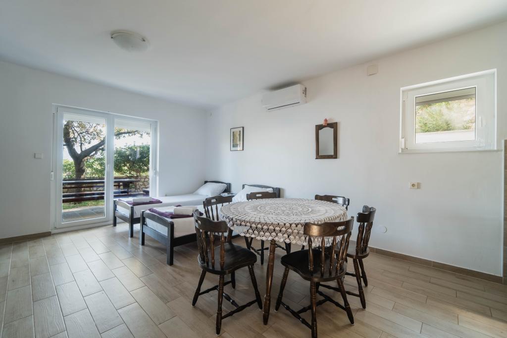 Taxa de rezidenta este inclusa in pret. Document de confirmare a rezervării la rezervareAm închiriat ambele apartamente cu un grup de prieteni și copii. Este o locație foarte liniștită, retrasă, verde, cu priveliști frumoase, ambele apartamente sunt atent și bine echipate, iar gazdele sunt foarte prietenoase. Apartamentul de sus este mai însorit și este format din trei dormitoare duble (unul este conectat la sufragerie), o bucătărie și o baie. Un dormitor are o canapea extensibilă suplimentară. Apartamentul are două unități de aer condiționat și o terasă însorită, care oferă umbră binevenită după-amiaza. Apartamentul de jos este format din trei dormitoare (primul este un dormitor dublu mare, al doilea este un dormitor dublu mic, iar al treilea este un dormitor mic pentru 1-1,5 persoane), o bucătărie bine utilată cu o zonă de luat masa și două paturi suplimentare și o baie. Acest apartament are, de asemenea, două unități de aer condiționat. Apartamentul are o terasă umbrită și acces la o mică grădină verde cu șezlonguri. Un mare avantaj al ambelor apartamente este plasele de țânțari la toate ferestrele, accesul la o mașină de spălat, un duș exterior, Wi-Fi funcțional și parcarea privată. Accesul la plajă se face printr-o coborâre destul de abruptă de trei minute, printr-o potecă pavată confortabilă și niște trepte. Plaja este un golf frumos, potrivit atât pentru copii, cât și pentru înotători buni, fiind interesantă și pentru pasionații de snorkeling. Un magazin alimentar, restaurante și alte atracții și servicii se află la câțiva kilometri distanță, în fermecătorul oraș Pag. Proprietarii apartamentului sunt incredibil de prietenoși și ospitalieri, mereu prezenți și având grijă de tot. Vorbesc bine engleza și răspund rapid la solicitări. Ne place foarte mult cazarea și o recomandăm.