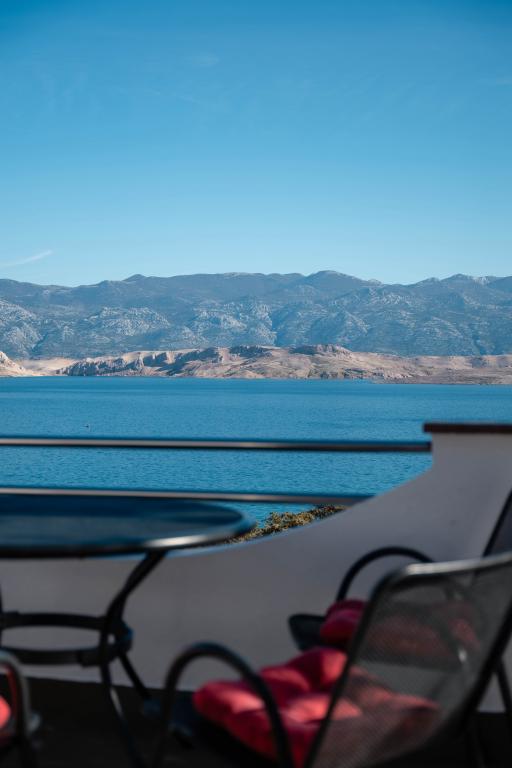 Un colț fermecător pe frumoasa insulă Pag. În fiecare zi aveam o priveliște minunată de pe terasa golfului turcoaz, cealaltă parte a insulei și munți frumoși. La doar un minut până la plajă. Vremea a fost de asemenea minunată, soare non-stop și apă caldă. Gazdele noastre Davorin și Ruzica au fost foarte drăguți și prietenoși. Ruzica a copt o prajitura special pentru noi iar Davorin ne-a adus chilotii dulci. Am putea scrie mult și mult, dar cea mai bună evaluare va fi că vom reveni în același loc anul viitor. Sperăm să ne întâlnim curând și să explorăm insulele în continuare. Hvala. Vidimo se!