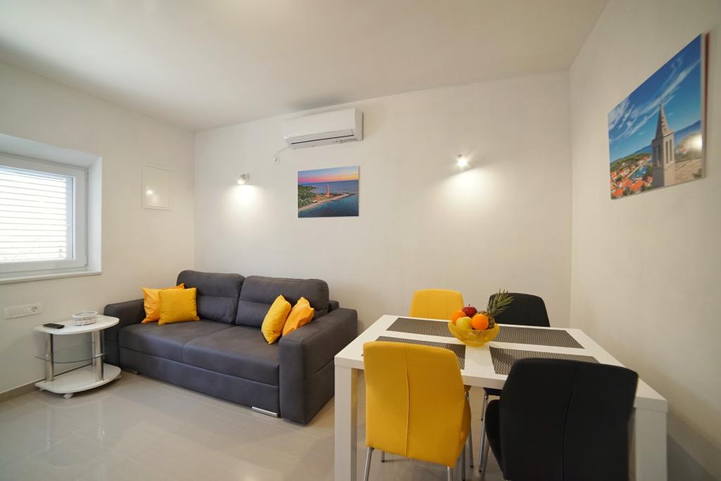 Apartament complet nou decorat, cu o suprafață de aproximativ 35 m², într-o zonă liniștită din Božava. Este la aproximativ 5 minute de mers pe jos de plajă și la 3 km de plaja cu nisip de pe insulă. Casa este singura cu o curte in spatele casei, este asigurat un loc de parcare.