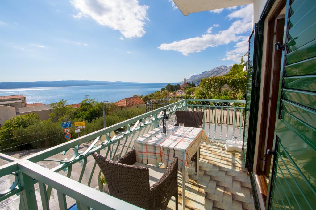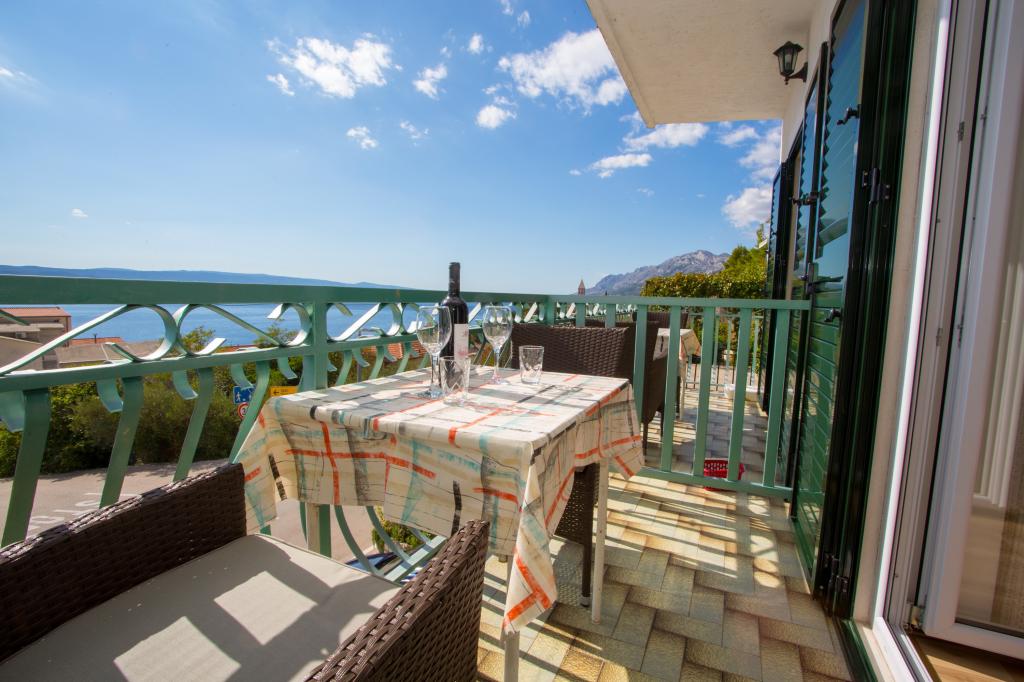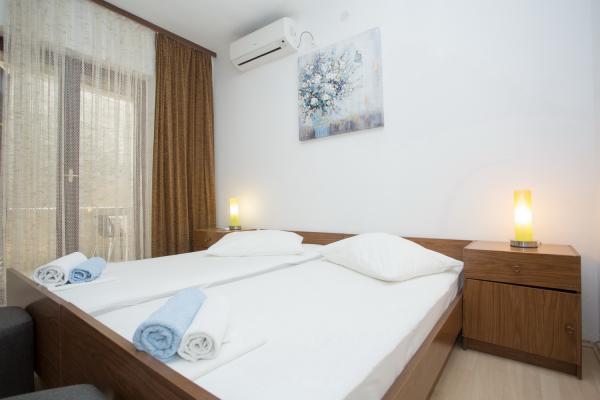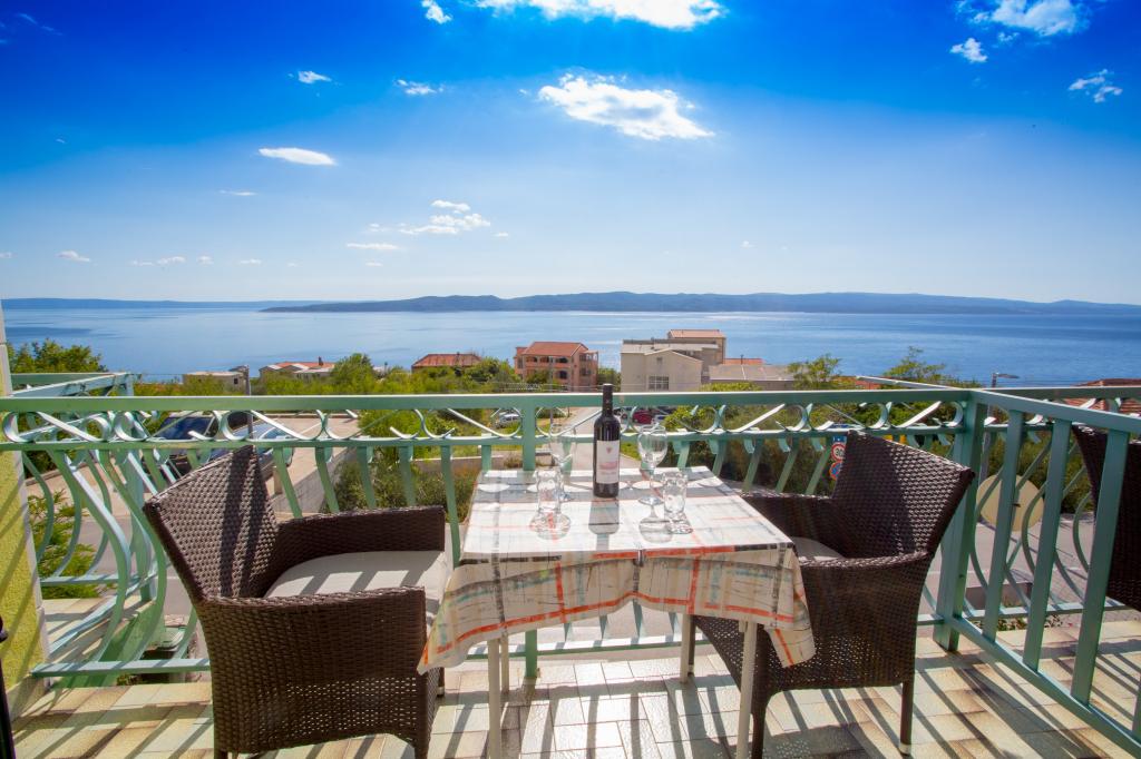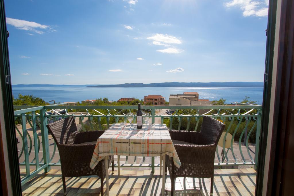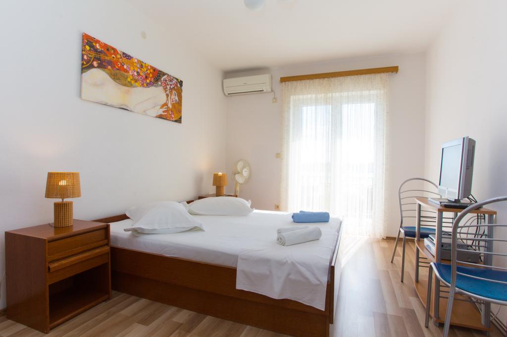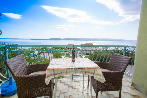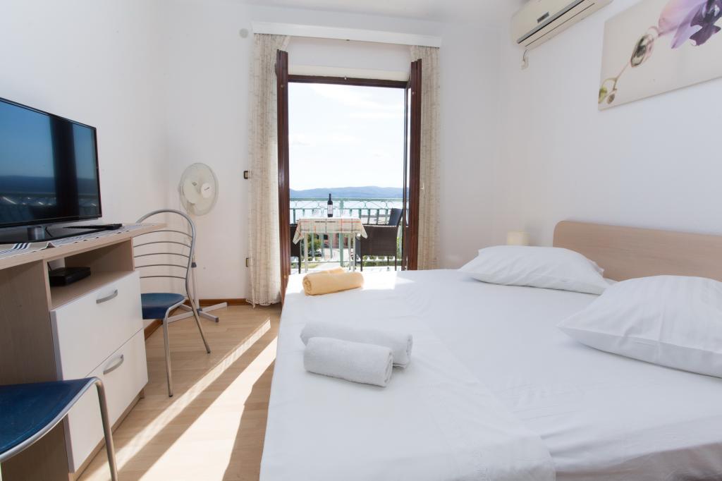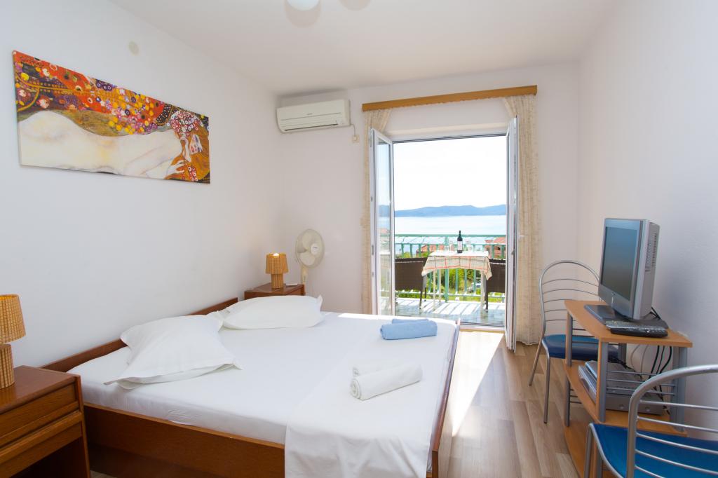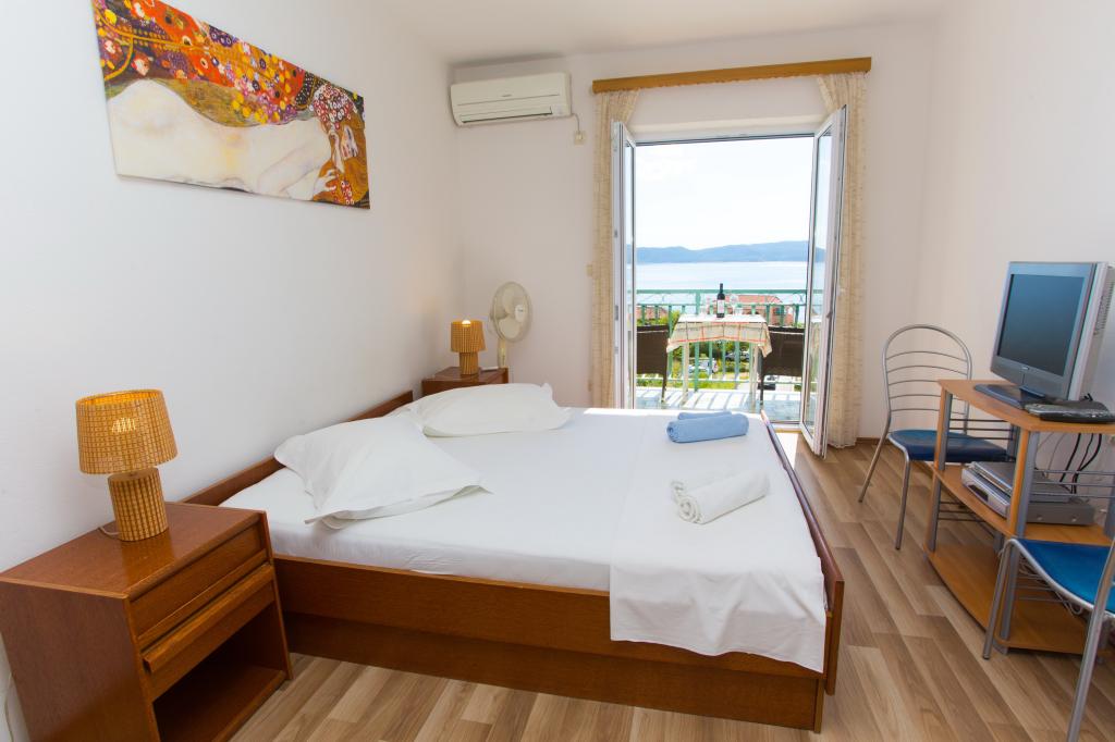Apartamentul este complet echipat pentru locuințe. Fiecare cameră are propria toaletă / baie, aer condiționat și TVSAT. Lenjerie de pat la fiecare 7 zile sau în mod concertat. Facilitatea este situat la o altitudine de aproximativ 80 m. Departe de mare 500 m. Balconul oferă o vedere magnifică a apelor Split la Makarska. În vederea insulele Brac și Hvar, și în spatele unui versant de munte frumos.