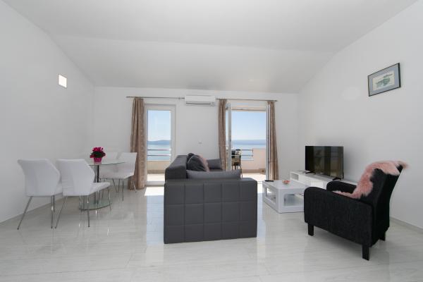 apartamente spațioase și confortabile sunt situate într-o suburbie liniștită din Brela-Jakirusa Fiecare apartament are intrare proprie separată și un balcon cu vedere la mare. bucătărie complet echipată.