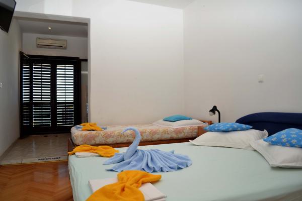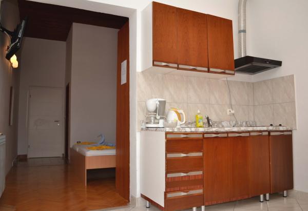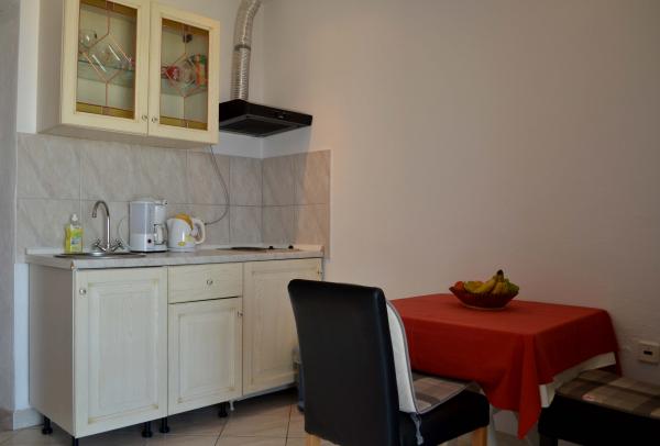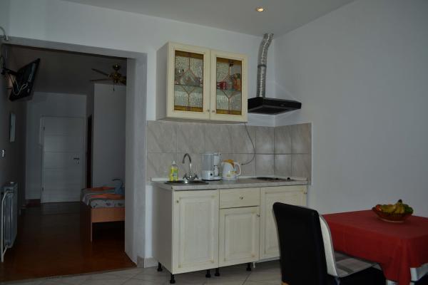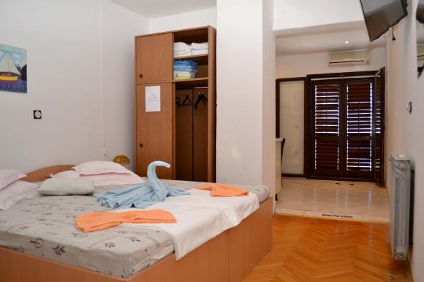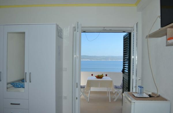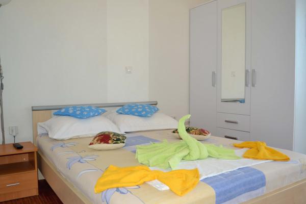 Plăcută și frumoasă, însorită, în cel mai frumos loc din lume, înconjurat de pini, cu o vedere frumoasă la mare este o casa unde se pot inchiria un apartament sau o cameră. Cu o baie bună, odihnă și recreere, vă puteți bucura la sfârșitul fiecărei zile apus de soare unic, iar pe un gratar mare puteți coace un pește proaspăt puțin cu o sticlă de vin bun. Mâncare!