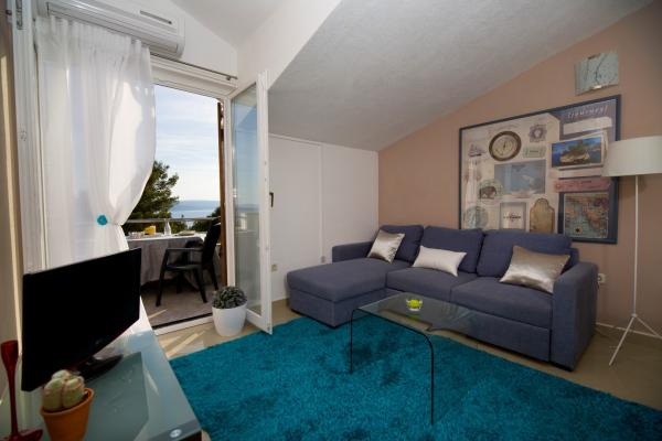 Apartament cu vedere frumoasă la mare, pădure și munți. Cafeaua dimineața pe balcon este o plăcere pură. Bucătăria era bine utilată, tot ce era necesar era acolo. Aerul condiționat funcționează bine cu o putere bună de răcire. Paturile erau foarte confortabile. Orașul Brela este atmosferic și frumos. Proprietarul se asigură că oaspeții se simt bine și confortabil. Am petrecut 10 zile in apartamentul Lavanda si va pot recomanda cu sinceritate acest loc. În numele meu și al familiei mele, aș dori să vă mulțumesc încă o dată pentru că ne-ați permis să ne petrecem vacanța în apartamentul domnului Wiktor. Salutari si ne vedem in curand