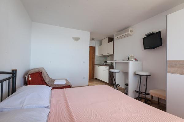 Recomand apartamentul Lela. Are o cameră cu chicinetă și o baie complet utilată. Balconul are vedere la mare. Este aproape de plajă, iar locația este excelentă. Proprietarii sunt foarte prietenoși. Cu cele mai bune urări, Magdalena din Polonia