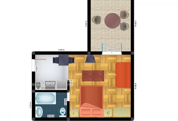 Apartament studio pentru două persoane cu pat suplimentar (0 m2)