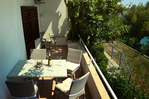 Cazare modernă cu vedere frumoasă la mare, al doilea rând la mare (aprox. 40 m). Apartamentul A4 1 / la etajul 2 / este dotat luxos si este destinat pentru 4 persoane cu posibilitatea unui pat suplimentar sau un patut. Este compusa dintr-o bucatarie, doua dormitoare (trecand dintr-o camera in alta), fiecare camera are baie proprie. Fiecare camera are LCD, aer conditionat, WIFI. Apartamentul A4 2 /parter/ este un apartament de aproximativ 70m2. Este un apartament modern cu bucatarie mare si sufragerie cu LCD, are doua camere mobilate modern, fiecare cu baie proprie, aer conditionat. Camerele au o terasă-balcon comun mare, cu o vedere frumoasă. Mai multe mașini sunt parcate în garaj. Posibilitatea folosirii gratarului. Piata este la cca 70 m de apartament. Plaja este situata la 30 m de apartament. Restaurantele La Bomba, Mediteran și Ivandića dvori sunt la 100 de metri. Distanța de la Makarska este de 10 km. Apartament garsonieră A2 Rustical este un apartament destinat pentru 2 persoane, care își doresc o vacanță specială și minunată și în același timp trăiește o aventură în mod tradițional dalmat. În vechiul Etnosel ŠOŠIĆI, care este situat la doar aproximativ 300 m de mare