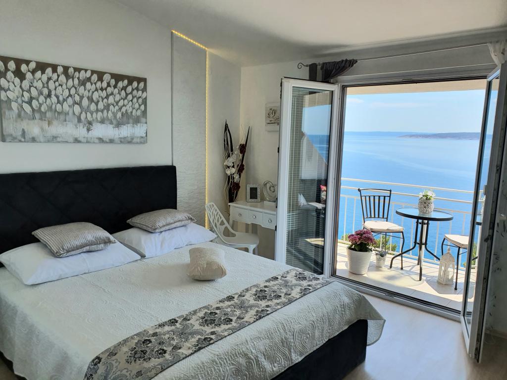 Am fost în apartament în prima jumătate a lunii iunie, fotografiile corespund perfect, vederea mării și din apartamentele inferioare este frumoasă, iar pentru multe plaje mai mici este într-adevăr câteva minute, până la cea mai apropiată 2 Gazdele sunt foarte drăguțe, comunicarea are loc cu un slovac nativ care locuiește aici. Bucătărie echipată foarte bine, nu ne-a lipsit nimic, camere curate, mobilier de calitate și paturi, ambele băi curate și fără probleme. Singurele două dezavantaje posibile: băile trebuie să fie ventilate spre hol și dormitor, iar bunicii locuiesc în partea din spate a parterului (foarte drăguț!), În timp ce izolarea nu este complet perfectă - dar se aplică în primul rând băilor și holului cu bucătăria