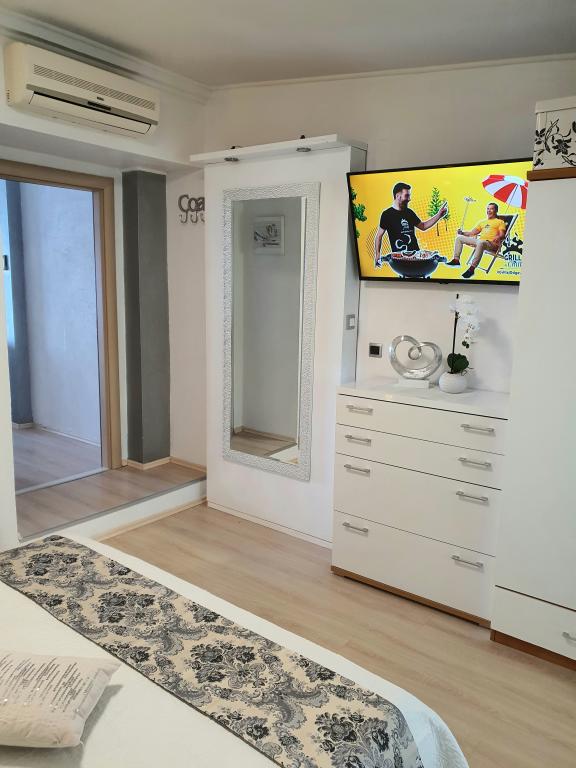Totul arată la fel ca în fotografii. Apartamentul este bine intretinut si curat. Perfect pentru două cupluri/cupluri căsătorite. În plus - o bucătărie mare și foarte bine utilată, aer condiționat în fiecare cameră, două băi, două ieșiri spre balcon (vedere parțială la mare, restul ascuns de vegetație). Apartamentul este situat într-o zonă liniștită din Brela, aproape de un mic magazin și un restaurant. Suntem multumiti si il recomandam. Asia