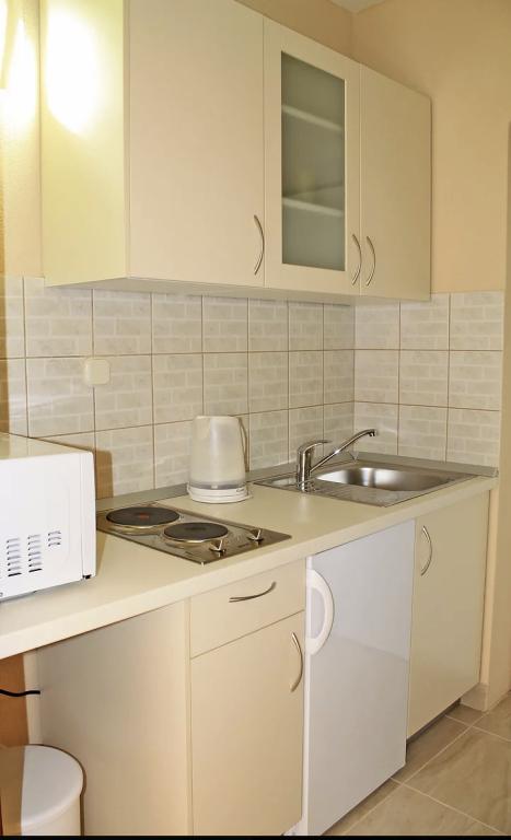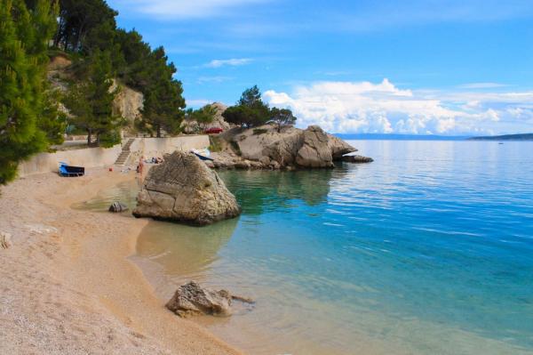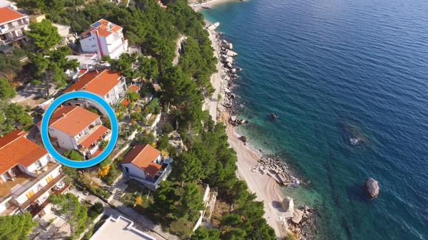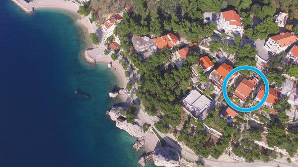 Apartamente într-o parte liniștită din Brela, la numai 40 m de plaja. In apropiere se afla doua restaurante. piață mică de 300 de metri de apartament, centru de 2 km. Prin întreaga Brela este situată de-a lungul coastei, care nu conduc mașini. Potrivit pentru copii și persoanele în vârstă. .