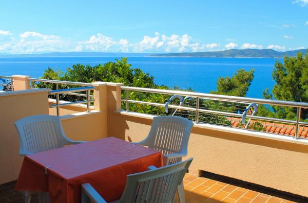 Am venit din vacanță și am scris imediat o recenzie. Cameră: totul corespunde cu fotografia. Camera este spațioasă, curată și luminoasă. O bucătărie mică cu toate ustensilele și vesela de bucătărie. Frigider, cuptor cu microunde, fierbător electric, televizor, aer condiționat. Și priveliștea de la balcon este superbă. A fost foarte plăcut să stai pe balcon seara. Când am ajuns, gazda ne-a întâmpinat și ne-a oferit băuturi răcoritoare de pe drum. Gazde foarte prietenoase, care s-au asigurat că ne-am simțit confortabil în timpul vacanței. Apartamentele în sine sunt la primul rând, trebuie să urcați scările. un fel de exercițiu zilnic. Pentru persoanele în vârstă, va fi dificil de urcat. Căutam apartamente departe de centrul orașului Brela. Ne doream liniște și am obținut-o. Este liniște în această parte a orașului Brela. Ne-a plăcut totul. Recomandăm aceste apartamente pentru relaxare. Și Brela în general.