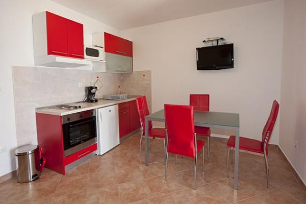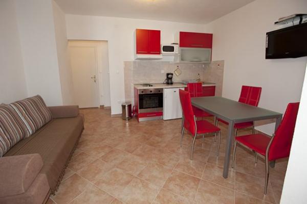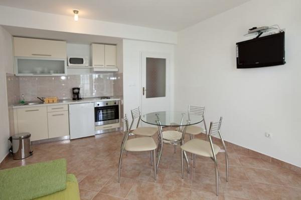Apartamente complet mobilate modern într-o zonă liniștită din centrul orașului Brela. Situat în primul rând până la mare. Proprietatea este situată direct pe plajă la 2 min. mers pe jos până în centru.