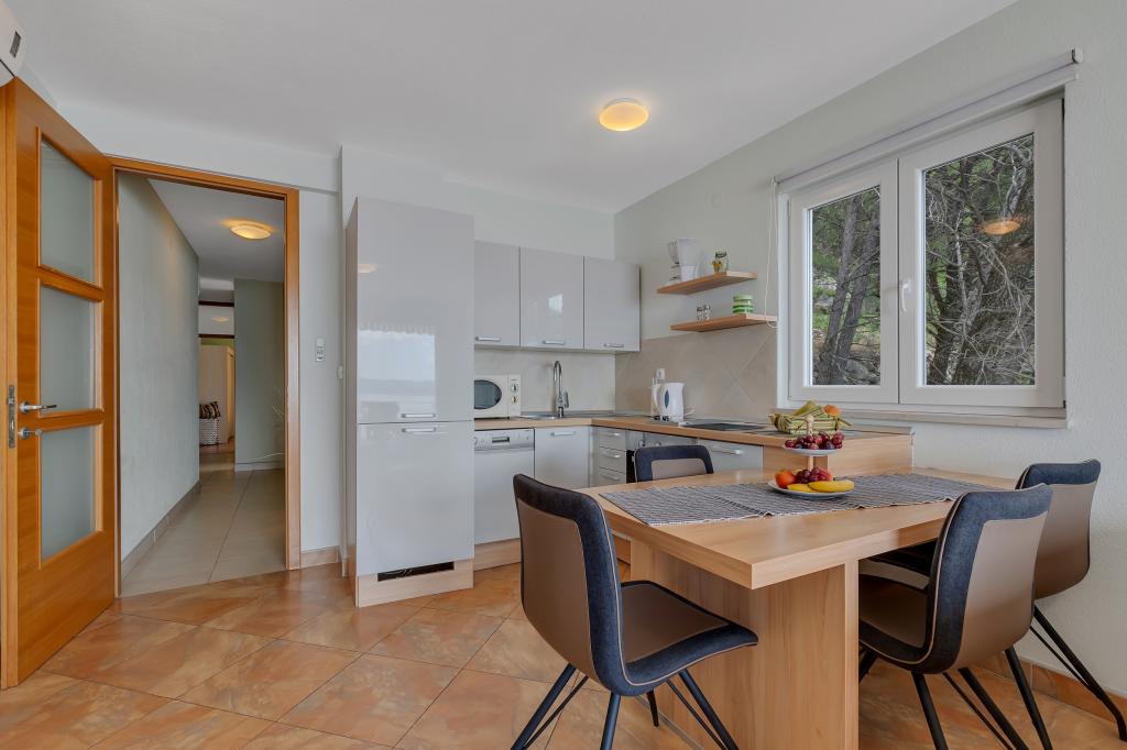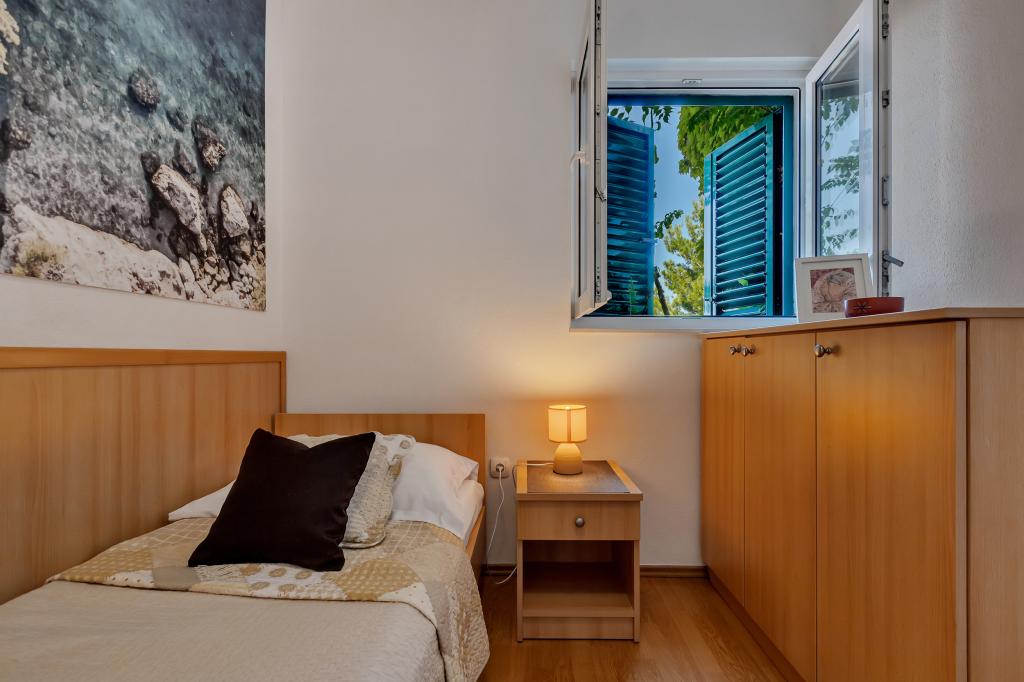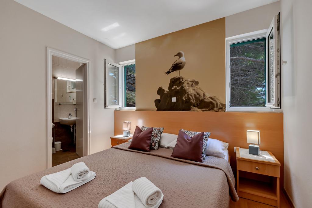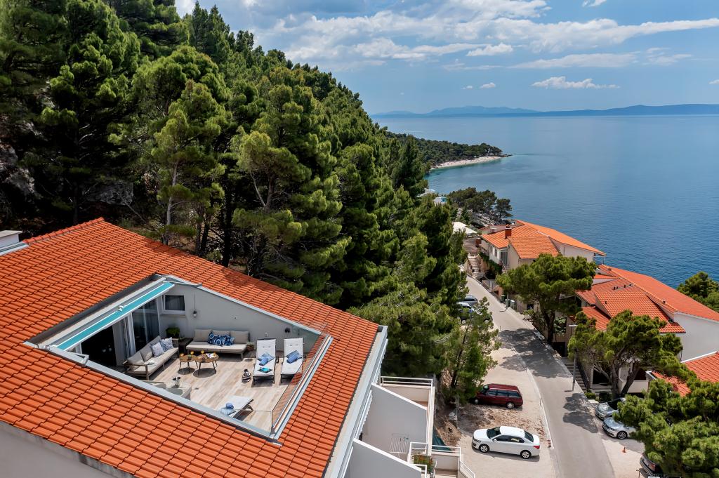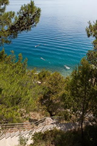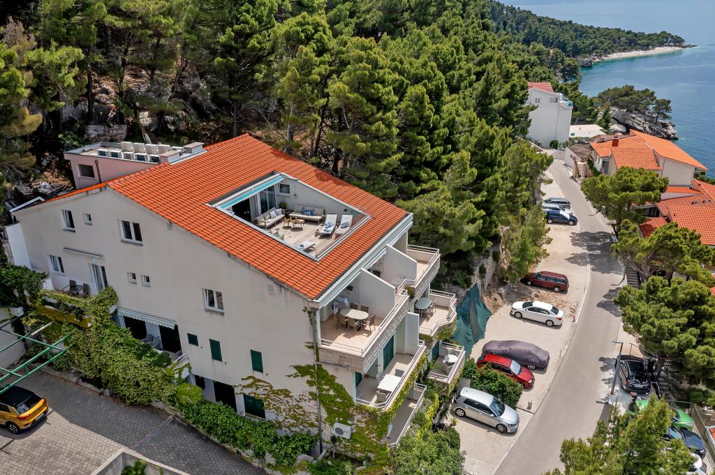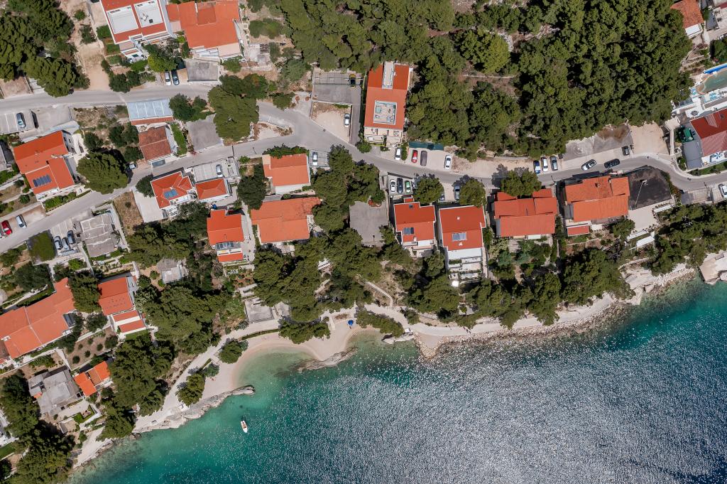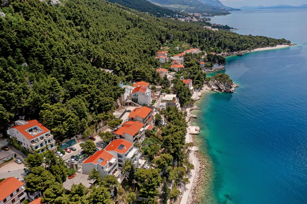 Casa noastră este situată într-o zonă liniștită și verde din Brela, situată la 50 de metri de mare. La plajă, care se află chiar sub casă, se poate ajunge pe scări private. Celebra plajă Punta rata este situată la aproximativ 500 de metri de casă, iar centrul orașului se află la aproximativ 10-15 minute de mers pe jos prin peisajul frumos de la malul mării. Toate apartamentele sunt dotate cu aer condiționat și au TV prin satelit și acces la internet.