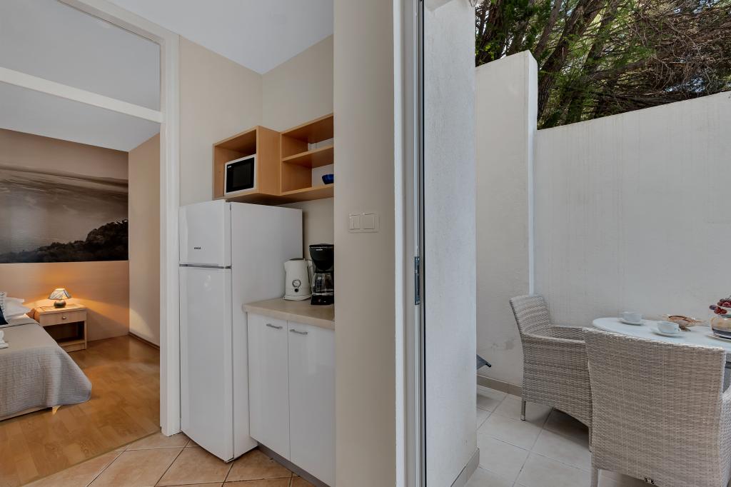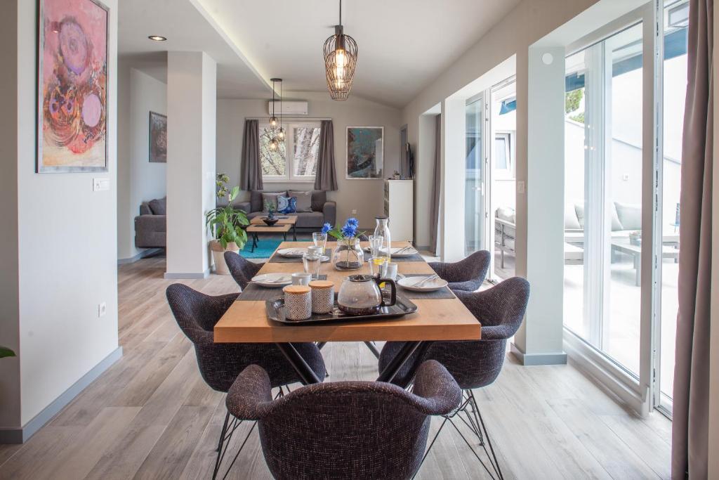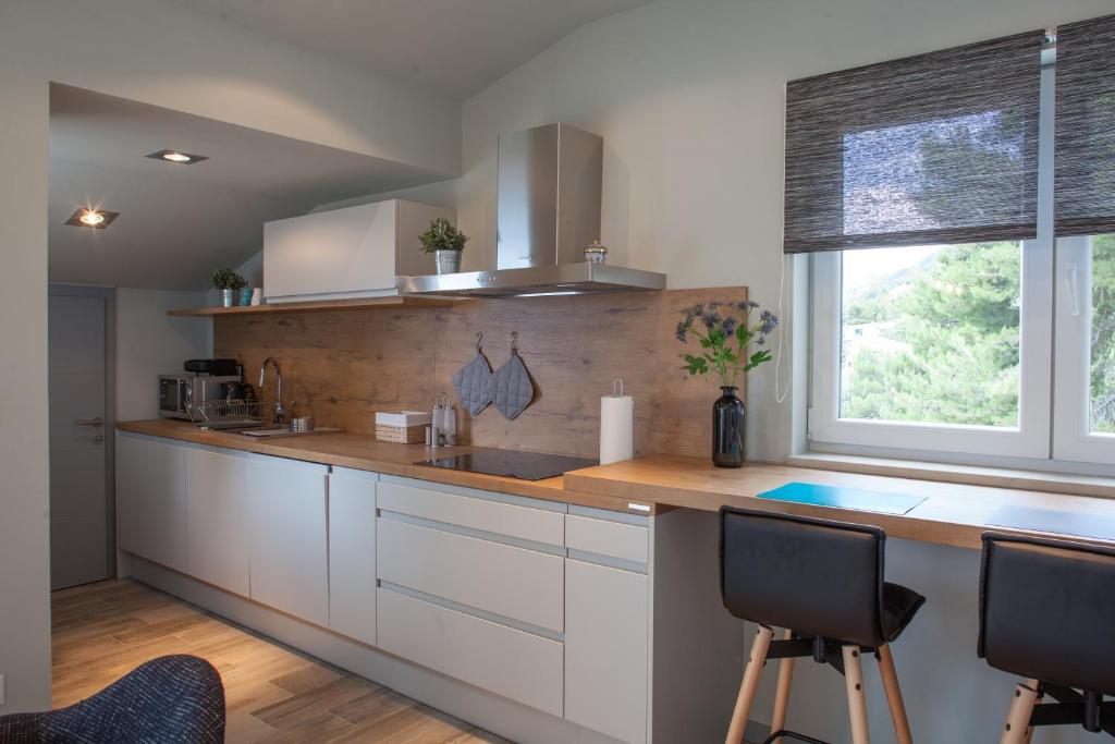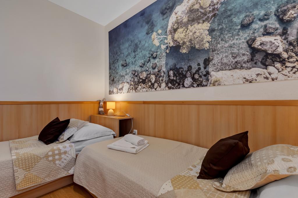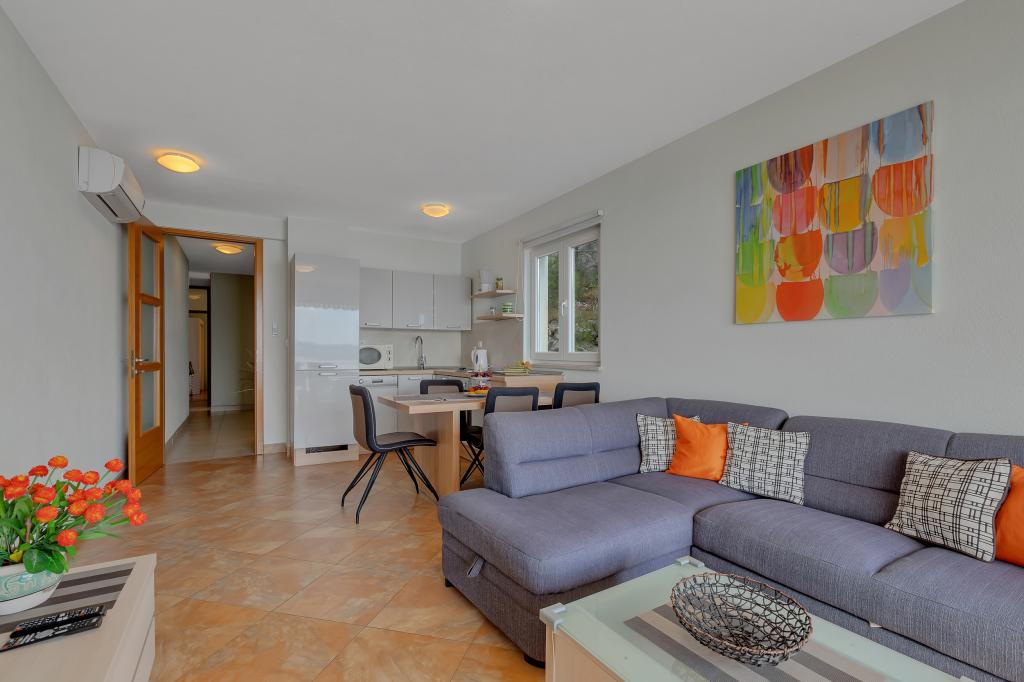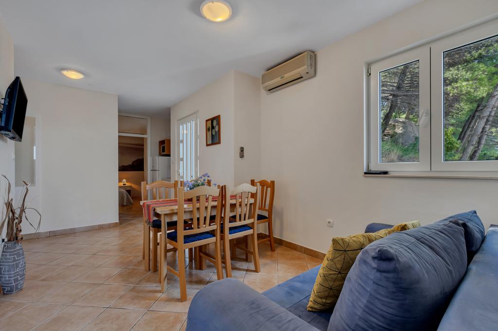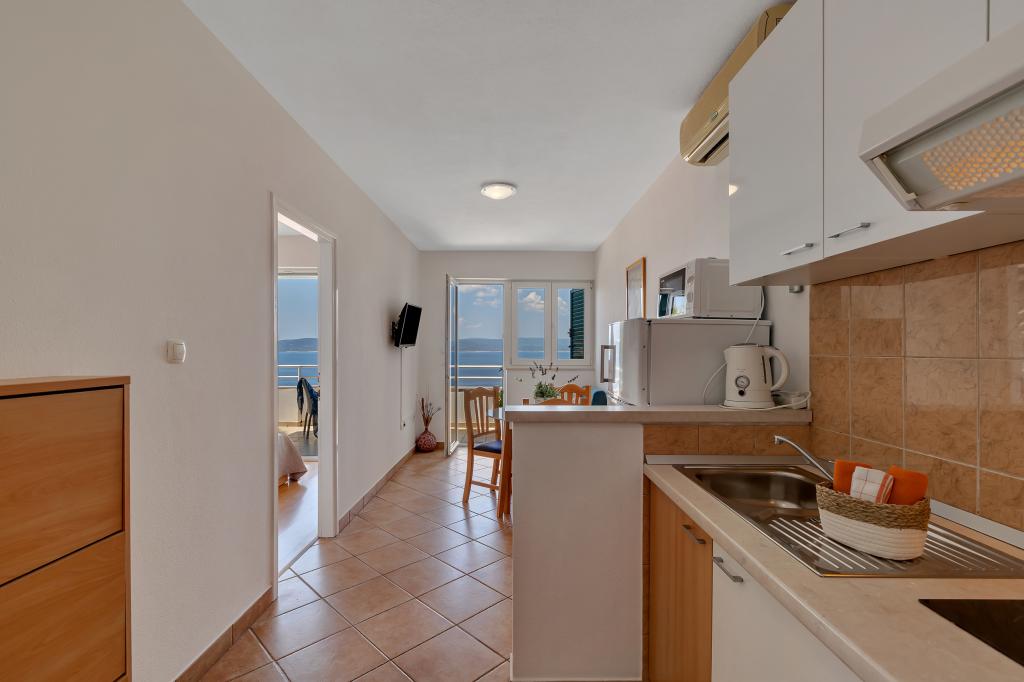 Casa noastră este situată într-o zonă liniștită și verde din Brela, situată la 50 de metri de mare. La plajă, care se află chiar sub casă, se poate ajunge pe scări private. Celebra plajă Punta rata este situată la aproximativ 500 de metri de casă, iar centrul orașului se află la aproximativ 10-15 minute de mers pe jos prin peisajul frumos de la malul mării. Toate apartamentele sunt dotate cu aer condiționat și au TV prin satelit și acces la internet.