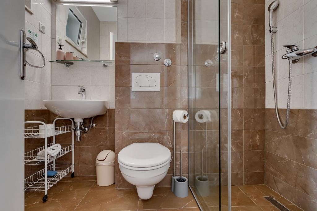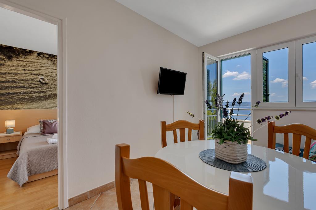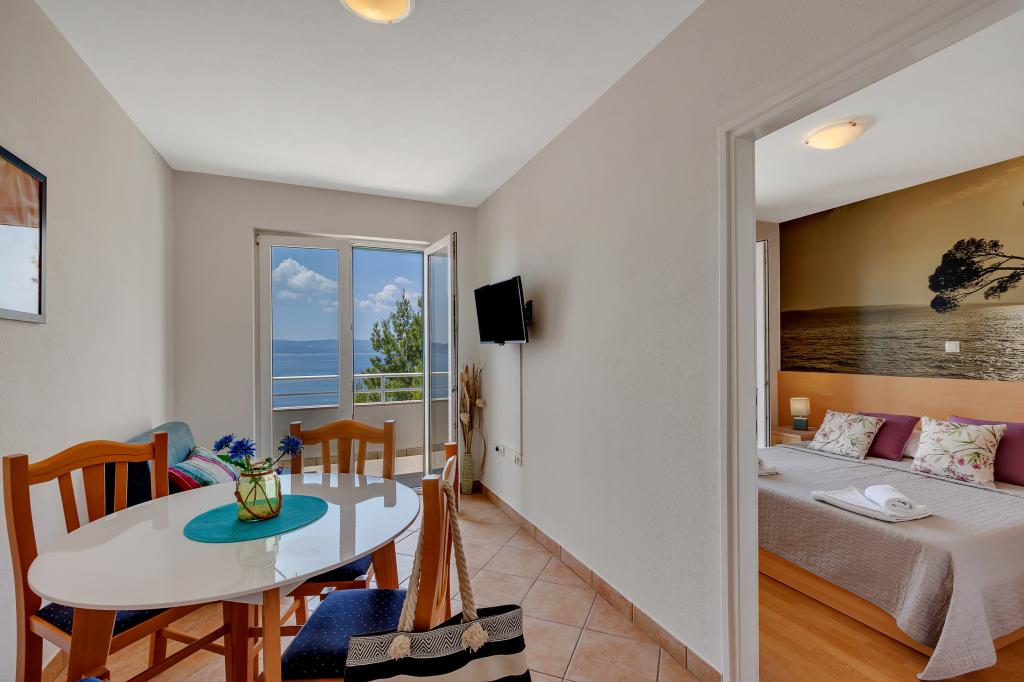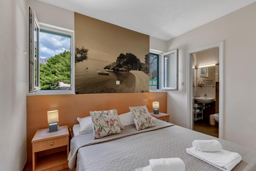 Acum câteva zile ne-am întors de la mare și trebuie să recunosc că suntem foarte dezamăgiți de ceea ce am primit. Prima impresie când am ajuns nu a fost bună. Parcarea pe care o avem este în sus pe un fel de terasă fără gard, iar mai jos e o prăpastie și o stâncă. Noaptea, parcarea nu este absolut luminată și este foarte riscant să parchezi. Ne-am prăbușit mașina și acum după vacanță trebuie să o reparăm. Următorul lucru este că în descriere scrie că plaja este la 50 m, dar nicăieri nu scrie că sunt cel puțin 150 de trepte până la plajă. A trebuit să mergem la plajă cu copiii și cărucioarele. Nu au pus o poză cu parcarea sau cu scările pe care le folosești pentru a ajunge la plajă. Internetul este si prost... Brela este minunata, natura e foarte frumoasa, dar vizitezi aceasta cazare intr-un cerc larg!!