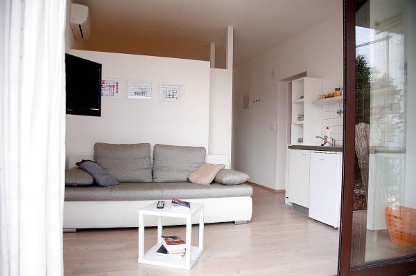Casa noastră este situată într-o locație excelentă, aproape de plajă (3 rând), cafenele, restaurante, plimbări pe plajă și centrul orașului. Înconjurat de case familiale. Apartamente în casa noastră vă oferă o atmosferă de pace, liniște și foarte plăcută. Ambele apartamente au acces Wi-Fi gratuit. Unitățile noastre de cazare sunt spațioase, simplu și modern. Acestea au o bucătărie complet utilată, baie, balcon sau terasă. Ceea ce aș evidenția este cu siguranță o vedere frumoasă la mare și insule, iar panta de munte.