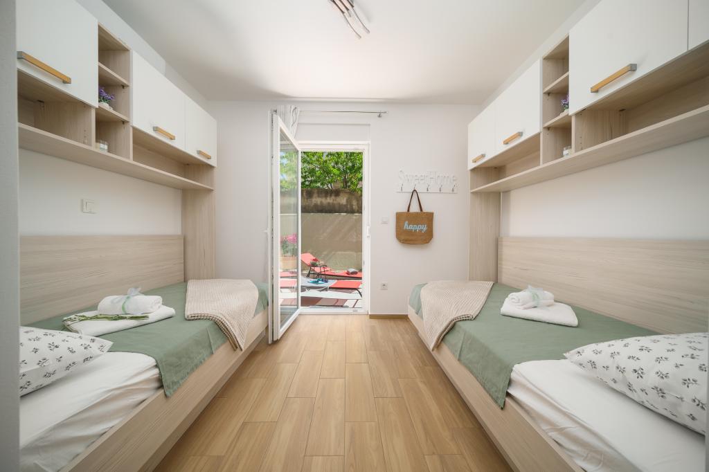 Apartamentul Iris este situat în Brodarica, într-o zonă liniștită și pașnică. Cazarea este foarte aproape de mare și de plaja Rezalište, care poate fi ușor accesată pe jos. În împrejurimi puteți găsi restaurante, piețe, brutării și cafenele. Apartamentul Iris este complet utilat și are aer condiționat. Include 2 dormitoare, un living, o bucătărie cu vase, frigider și aparat de cafea, precum și 1 baie, 2 terase, parcare privată gratuită și WiFi.