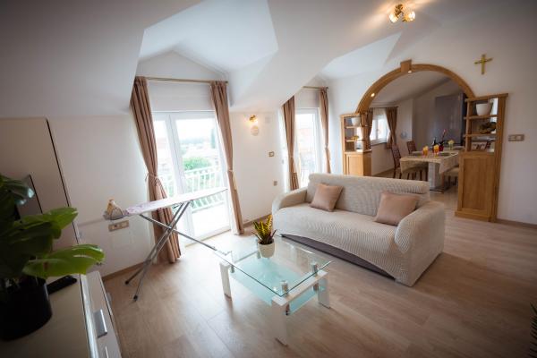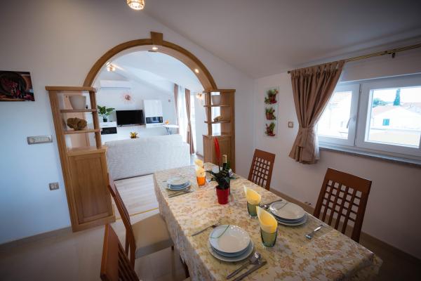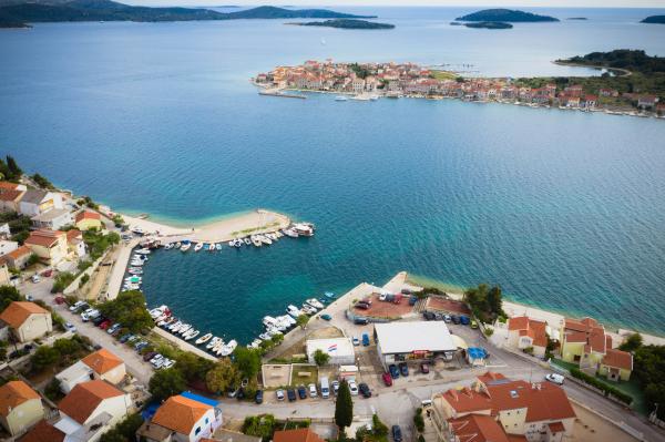 Apartamentul Marcela din Brodarica, lângă Šibenik, este situat la 200 de metri de cea mai apropiată plajă cu pietriș și are o vedere frumoasă la mare. Promenada Brodarica are numeroase cafenele, restaurante fast-food, pizzerii, restaurante și unul dintre cele mai bune (dar la prețuri rezonabile) restaurante de pește din Dalmația, Konoba Dalmare, care se află vizavi de noi. Orașul Šibenik este la doar 10 minute de mers cu mașina, iar Parcul Național Krka este la 20 de minute. Apartamentul Marcela, de 4 stele, primește oaspeții din mai 2019. Are 3 dormitoare, 3 bai, toate camerele au aer conditionat, 2 terase si o bucatarie complet utilata (vesela si tacamuri, aragaz, plita electrica, frigider, congelator, cuptor cu microunde, masina de spalat vase...). Suplimentele gratuite includ (parcare gratuită, acces gratuit la internet wireless, aer condiționat gratuit, curățenie finală gratuită, prosoape și lenjerie de pat gratuite).