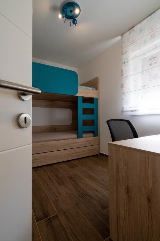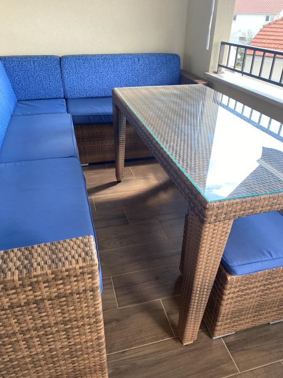 Nou pe piata. Apartament modern cu vedere la mare și la insula Krapanj. Apartamentul are doua dormitoare - unul cu pat matrimonial si celalalt cu pat supraetajat + pat suplimentar. Apartamentul este dotat cu 3 unitati de aer conditionat situate in dormitoare si living. Frumoasa terasa cu vedere la mare este dotata cu o canapea de coltar confortabila si un ventilator pentru uz exterior. Copertina de pe terasă oferă suficientă umbră în zilele caniculare. Accesul la mare se face din partea de jos a apartamentului. Distanța de la mare este de 60 de metri, ceea ce face ca acest apartament să fie ideal pentru relaxare.
