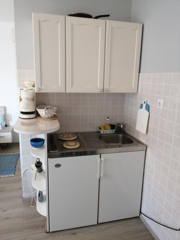 Apartamentele noastre sunt situate în primul rând spre mare într-un golf frumos din Brodarica, care oferă o vedere a celei mai mici insule din Adriaticul - Krapanj. Oferim 2 apartamente studio care conțin o bucătărie complet echipată, baie cu duș, internet gratuit și parcare și posibilitatea de a folosi grătarul. De asemenea, avem o dană suplimentară pentru o barcă. În imediata apropiere există numeroase cafenele, pizzerii, magazine și restaurante. De asemenea, pe o rază de 100 de metri, există un medic, un birou poștal, un port de feribot care circulă regulat spre insula Krapanj și o stație de autobuz pentru orașul Sibenik. Un punct de plecare ideal pentru parcurile naționale Krka și Kornati din apropiere și pentru orașul Šibenik, care oferă o cultură bogată și diverse monumente culturale și istorice. Dacă alegeți apartamentele noastre, suntem siguri că veți petrece o vacanță plăcută și de neuitat.