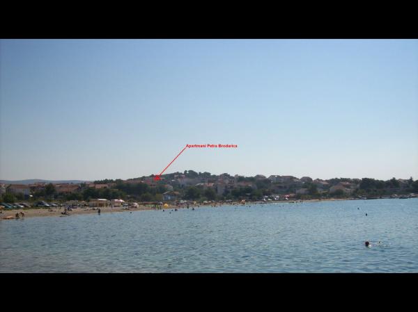 Tipul proprietății - casă de familie. Situată într-o zonă liniștită din Brodarice. Distanța de plajă este de 5 minute, de centru este de 20 de minute de mers pe jos. Este situată pe o pantă lină, care oferă o priveliște frumoasă asupra mării și a insulelor din apropiere. În jurul casei există o grădină cu legume, iarbă verde, flori și măslini și pomi fructiferi, precum și o curte interioară. În fața casei este o terasă mare acoperită cu verdeață, umbră, în interiorul căreia există un grătar. Casa are locuri de parcare pentru 5 vehicule.