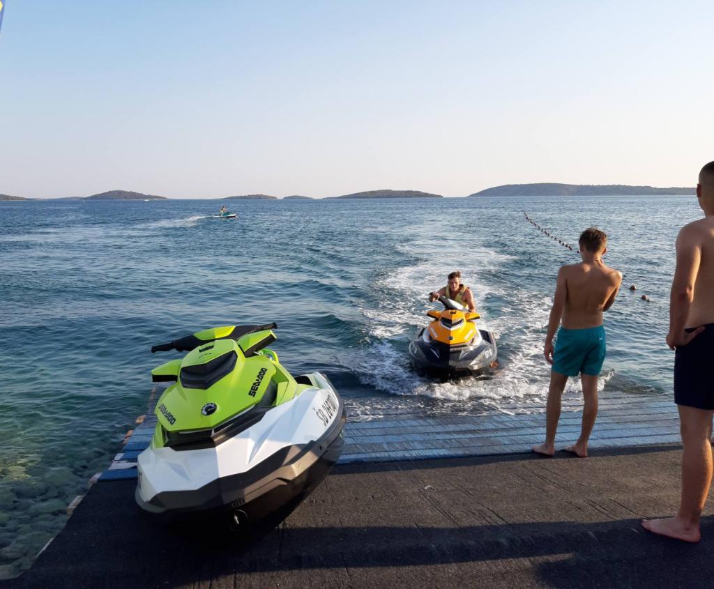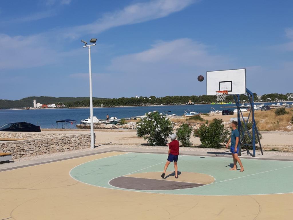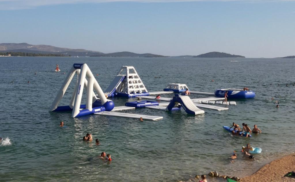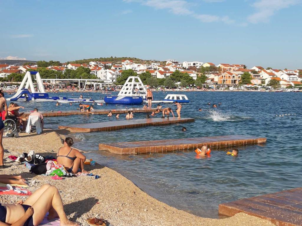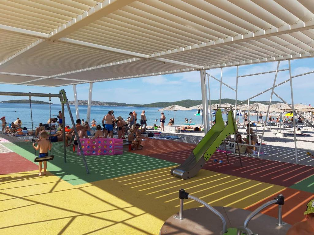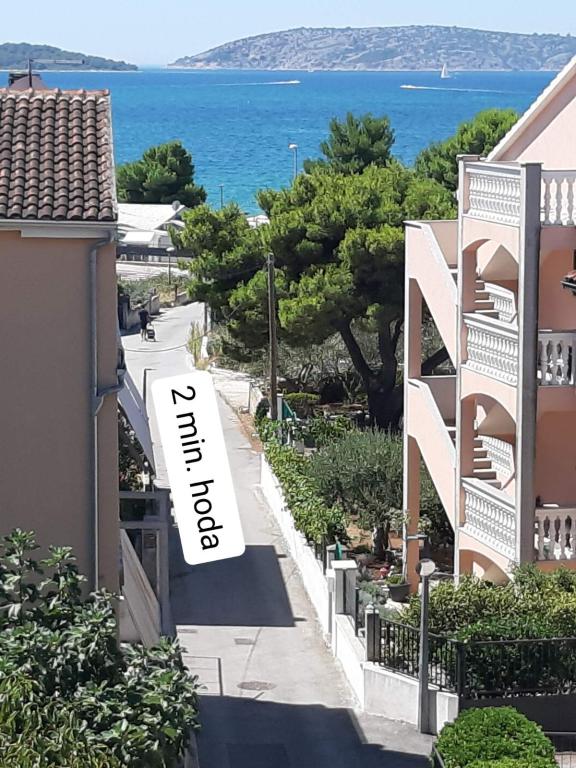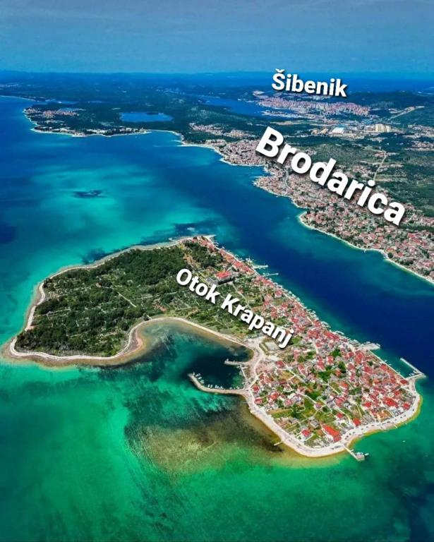 Apartamentele sunt situate într-o zonă liniștită din Brodarica, la 150 m distanță (2 minute de mers pe jos pe o stradă plată, fără pante) de plaja principală cu pietriș, lângă care există multe plaje mai mici cu pietriș pentru mai multă intimitate. Casa este înconjurată de verdeață și flori și are parcare gratuită la umbră pentru oaspeți. Apartamentele sunt dotate cu aer condiționat, fiecare cameră are baie proprie, o terasă/balcon mare cu vedere la mare și insule, bucătării utilate, mașină de spălat vase, cuptor cu microunde, grătar, încălzitor de apă, wi-fi, parcare gratuită. Ușile și ferestrele sunt protejate de plase de țânțari. La 100 m de apartament se află cel mai apropiat magazin, brutărie, fast-food, cafenele. Centre comerciale mari pentru alimente, îmbrăcăminte, încălțăminte etc. se află la 2 km de apartament. Pe plajă există un loc de joacă pentru copii la umbră, volei pe plajă, baschet, echipamente de fitness în aer liber, toalete, dușuri, jet ski, închiriere de bărci. Apartamentul pentru 4 persoane are 2 dormitoare, 2 băi, o bucătărie, o terasă mare cu vedere la mare și insule. Terasa are șezlonguri și grătar.