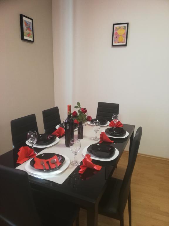 Apartamentele sunt situate intr-o cladire rezidentiala noua in centrul orasului dar intr-un mediu linistit. Apartamentul este decorat modern și oferă tot ce aveți nevoie pentru a vă simți confortabil. Bucataria este dotata cu toate aparatele si ustensilele necesare pentru gatit si consumul alimentelor. Ai la dispozitie un televizor LG 3D mare cu ochelari 3D activi si o colectie mare de filme. Dormitorul este amenajat ca o cameră separată și oferă un spațiu intim. La intrarea în clădire există un seif pentru chei, care oferă oaspeților un anumit confort.