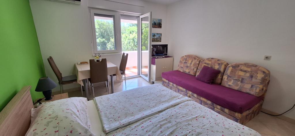La primul etaj al blocului, un balcon cu vedere la padure si verdeata. Pașnic și confortabil de dormit. În apropiere se află un teren de tenis, un teren de baschet, piste de biciclete, promenade și cea mai frumoasă și mai mare plantație de măslini din Croația. O stațiune de familie preferată și pentru iubitorii de natură. Plaje naturale, portul de agrement, grătar, restaurante, magazine, brutărie, patiserie și oficiu poștal sunt disponibile în imediata apropiere a apartamentului.
