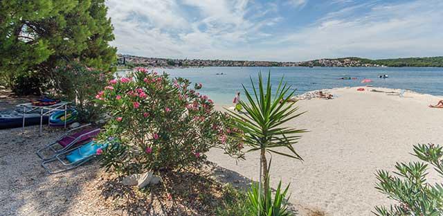 Pe plaja din apropiere, puteți închiria o barcă, un scuter, o hidrobicicletă, șezlonguri și umbrele sau puteți merge în excursii organizate pe insulele din apropiere. Există, de asemenea, o linie de vapor care circulă spre Trogir în fiecare zi, la fiecare 20 de minute.