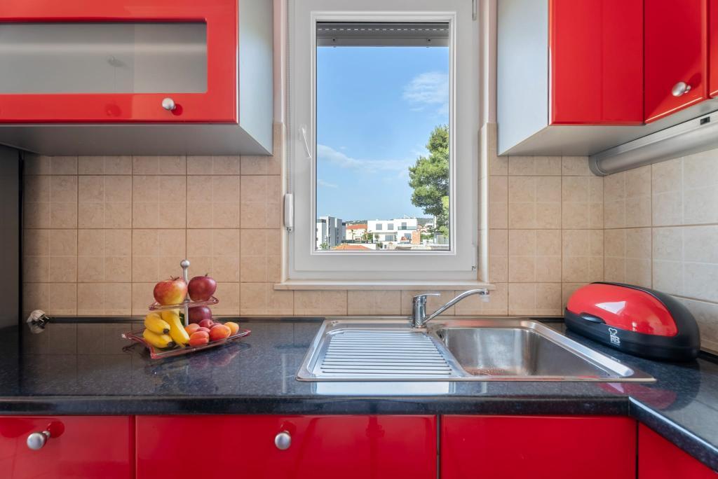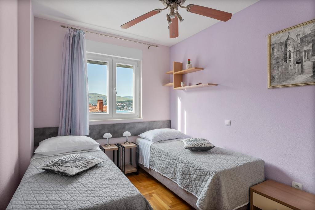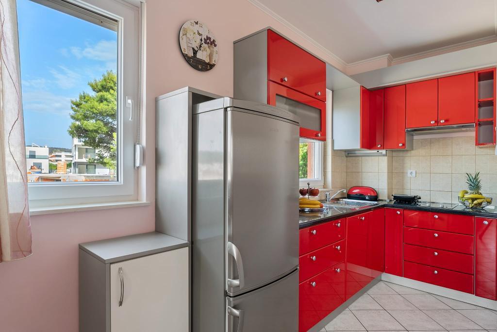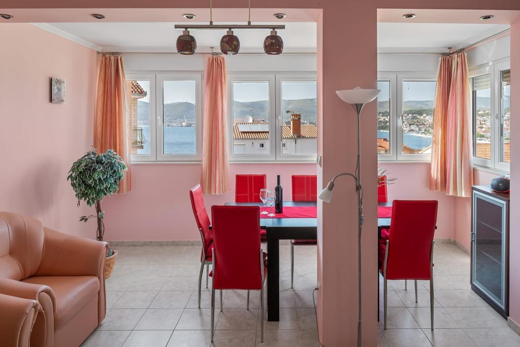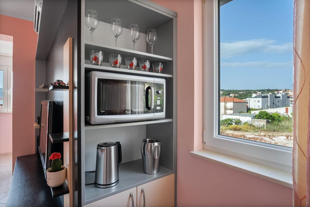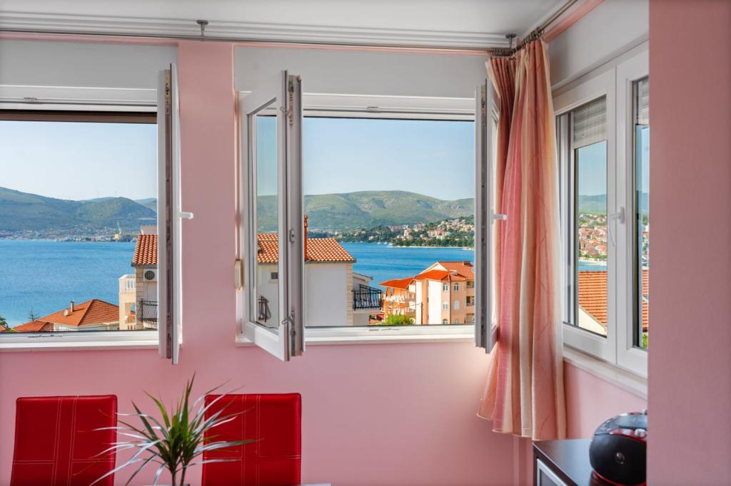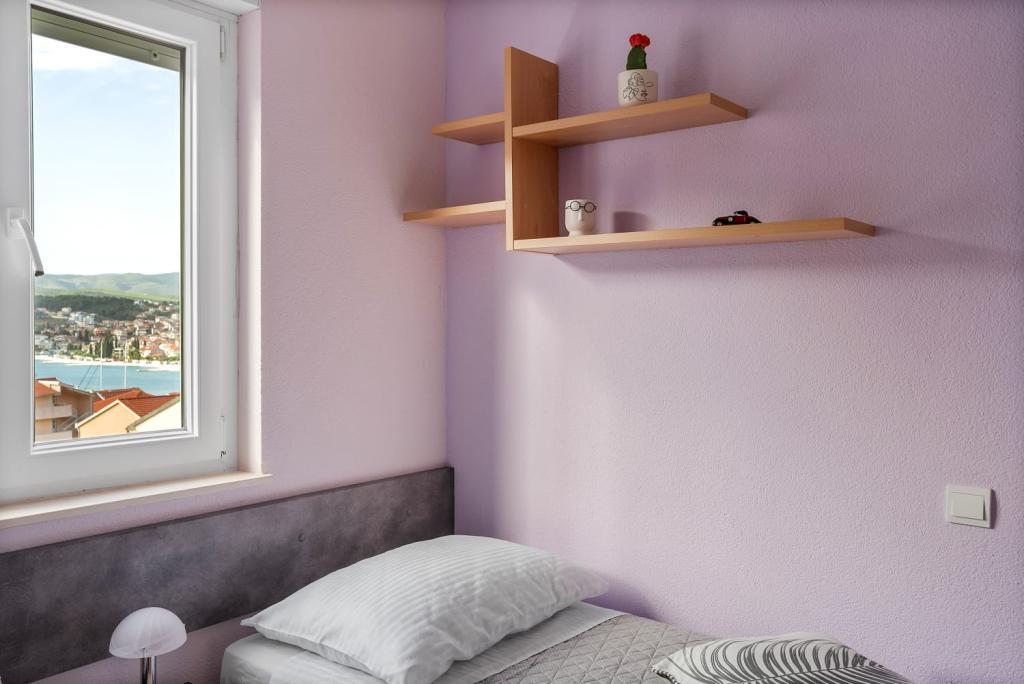 Apartamentul Summer memories este un apartament spațios și decorat modern, situat la etajul 2 al unei clădiri cu vedere la mare, la 15 minute cu mașina de aeroportul internațional. Apartamentul este situat lângă frumoasele plaje cu pietriș care se întind până la orașul vechi Trogir. Cea mai apropiată plajă se află la 4 minute de mers pe jos. Apartamentul are un balcon unde vă puteți savura cafeaua de dimineață și priveliștea mării. Are 2 dormitoare, dintre care unul are opțiunea de a combina 2 paturi într-un pat dublu. În apartament sunt 2 aparate de aer condiționat. Ai loc de parcare securizat pentru mașina ta în fața clădirii. În apropiere se află: un supermarket, cafenele și restaurante pe plajă.