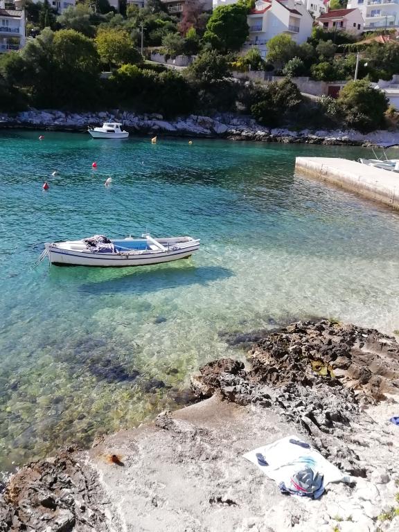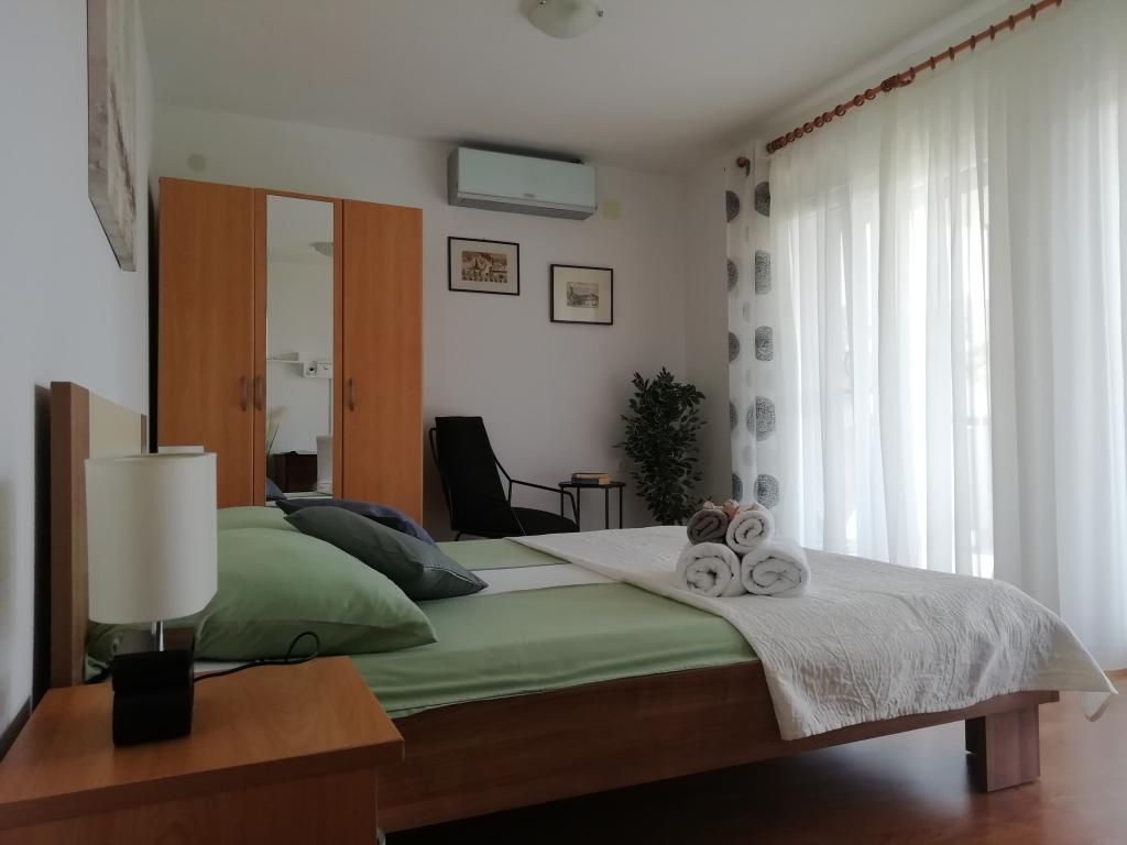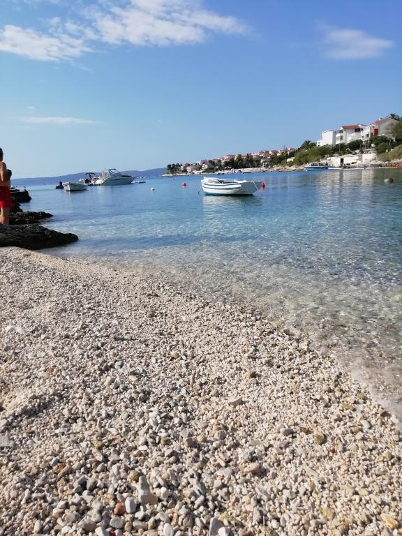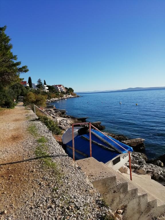 Apartamentele sunt situate într-o clădire recent construită, la 80 m distanță de frumosul golf și de plaja cu mare limpede ca cristalul. Mediu liniștit și liniștit lângă centura verde din partea de nord a clădirii, o alegere ideală pentru relaxare și vacanță liniștită în familie Apartamentele sunt spațioase, pline de lumină, aer condiționat, cu o terasă mare. Bucătăria este echipată cu toate aparatele și ustensilele necesare și ustensilele suplimentare necesare pentru gătit. Apartamentul are un dormitor mare cu pat dublu și o baie complet utilată. Oaspeții au la dispoziție WiFi gratuit, TV, mașină de spălat, loc de parcare acoperit, utilizarea grătarului. Golful Mavarčica este situat pe partea de sud a insulei Ciovo, drum conectat la Trogir cu două poduri, caracterizate de mare limpede și plaje naturale. Lângă clădire există o școală de scufundări și un număr mare de piste de biciclete prin natura neatinsă. Aproape de Trogir și Split (orașe aflate sub protecția UNESCO), Parcul Natural Krka, Aeroportul Split
