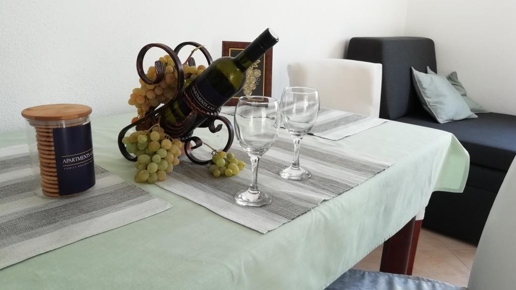 Apartamentul este frumos amenajat, curat si are o terasa mare frumoasa. Proprietarii apartamentelor sunt prietenoși, primitori, toate laudele. Nu departe de apartament există golfulețe mici, plaje frumoase, mare curată, albastru-verde. Recomand cu siguranta!