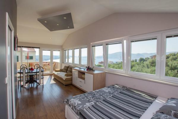 Sunt a doua oară în locul ăsta. Sunt in prezent in 2 + 2 ani in urma am fost in studio camere curate si spatioase, iar vederea magnifica. Petrovici oameni foarte frumos și de ajutor frumos am recomandăm cu toată inima. Preț foarte bun pentru bani, cel mai bun loc pe insula Ciovo
