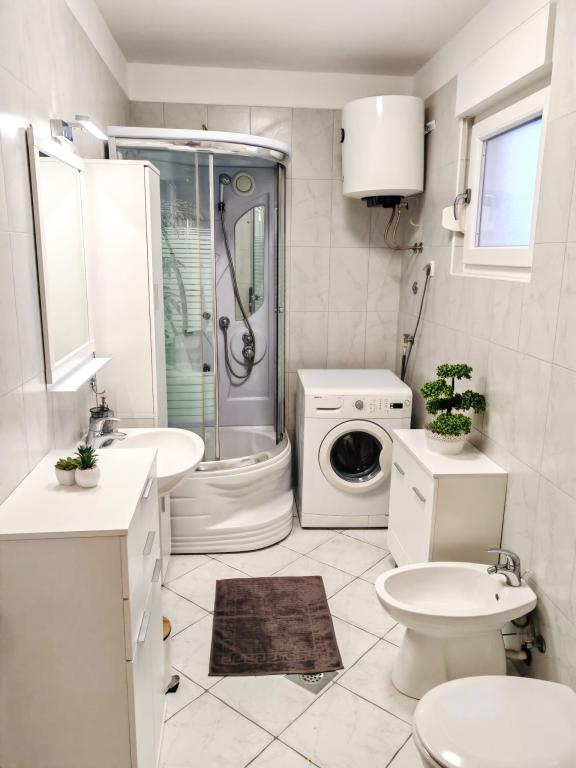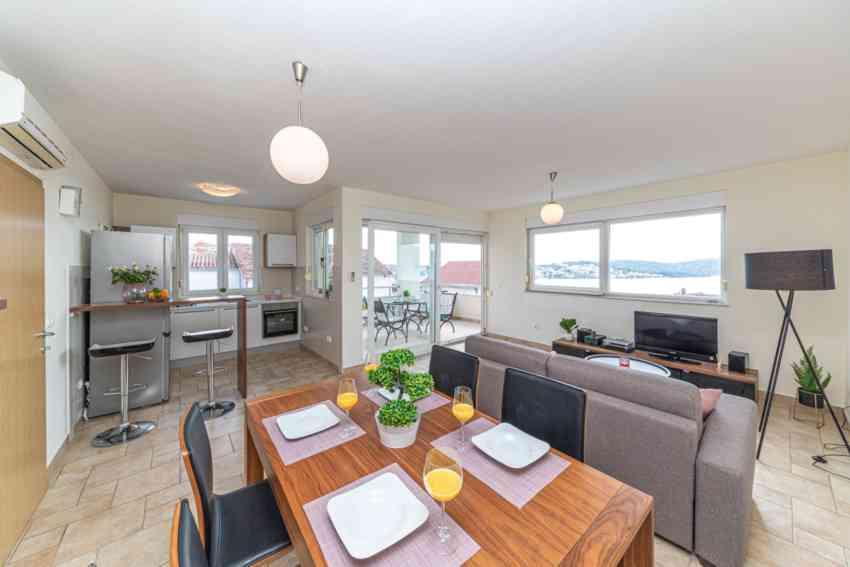 APARTAMENT GLAVICA este situat în Okrug Gornji (Put Putik Planikovica 10) Apartament este la 250 de metri de mare. Apartamentul este compus din 1 dormitor cu pat dublu, baie cu duș, bucătărie, living cu aer condiționat, cu canapea extensibilă și balcon mic cu vedere la mare. Apartamentul are, de asemenea, un loc de parcare situat deasupra clădirii. Garsoniera GLORIA și apartamentul MARINA sunt situate într-o clădire modernă situată pe strada Tudorski 34 / A și sunt la 200-300 de metri distanță de plaja principală din Okrug Gornji. Ei au tot echipamentul și conținutul de care au nevoie pentru o ședere plăcută și sărbători. Ambele apartamente au terase spațioase cu vedere la mare. Apartamentele au, de asemenea, un loc de parcare situat în fața clădirii. APARTAMENT DORIS este situat în strada Planikovica III 2A, constând din 2 dormitoare, baie, living și bucătărie, terasă cu vedere la mare și garaj. APARTAMENT CROATIA este situat într-o zonă bună de Seghet DONJI și TOATE 200 de metri dispuși din mare.