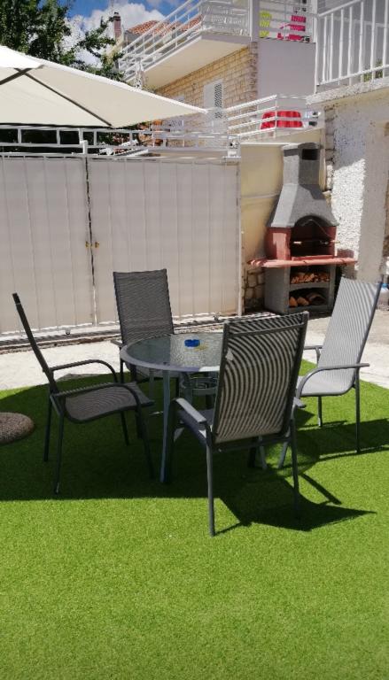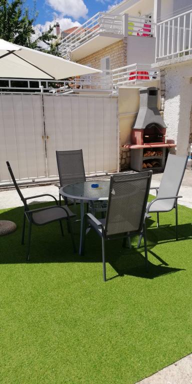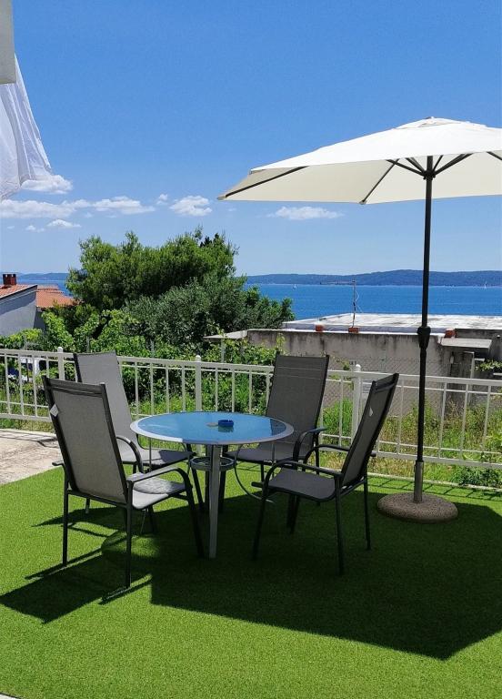 Apartament complet echipat modern, într-o parte liniștită din partea de sud a insulei Ciovo, care este conectată prin poduri. Apartamentul este situat la 70m de plajă, complet acoperit cu plase de țânțari, există un grătar situat în curtea spațioasă ... cafenelele și restaurantele se află la 200m, până la Trogir este la 5 km, la Split la 30 km.