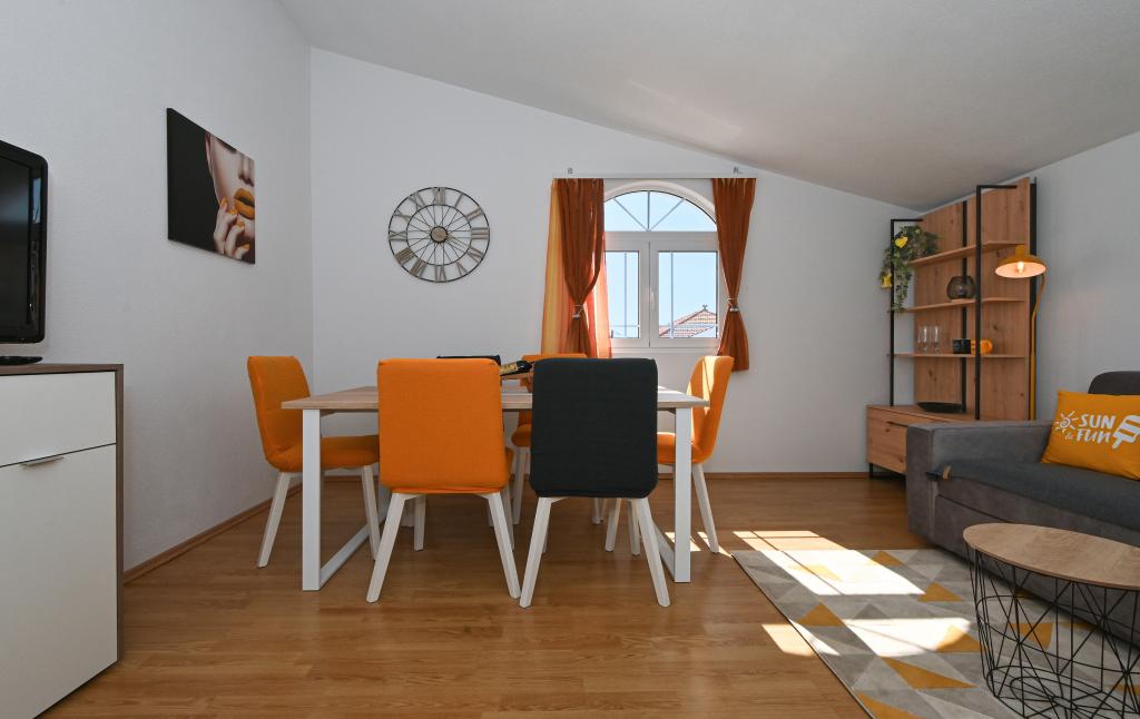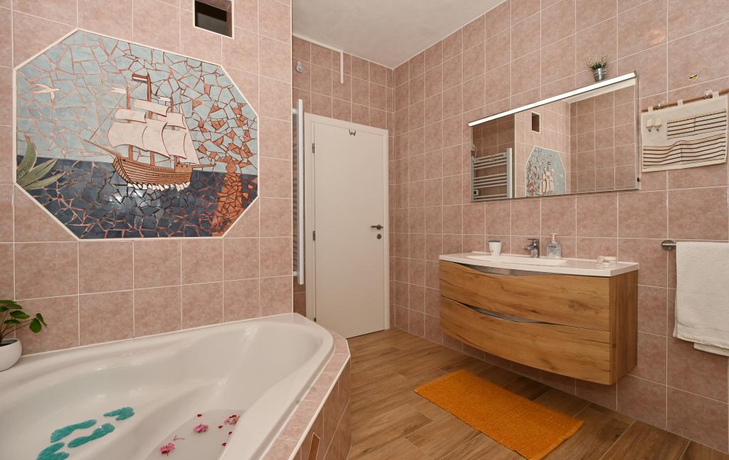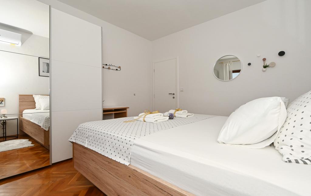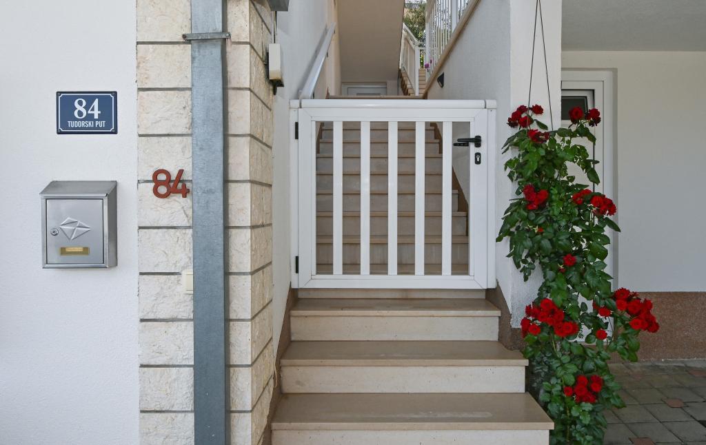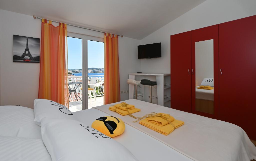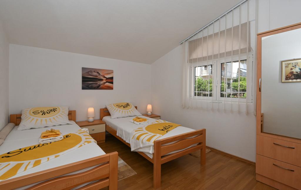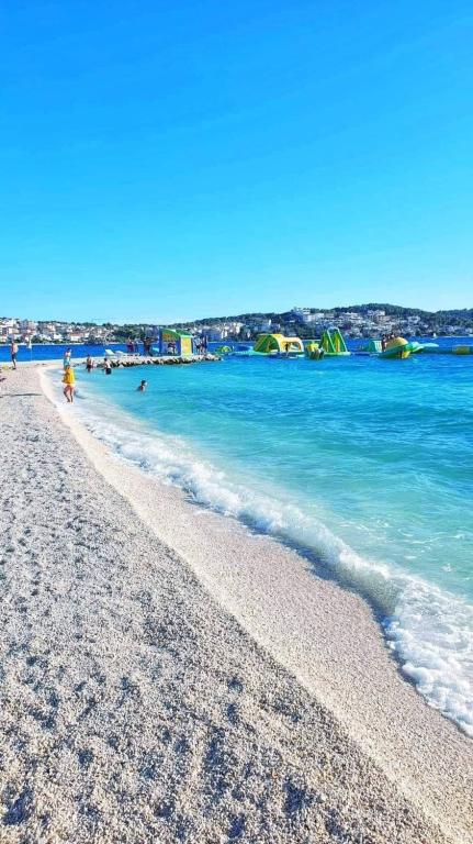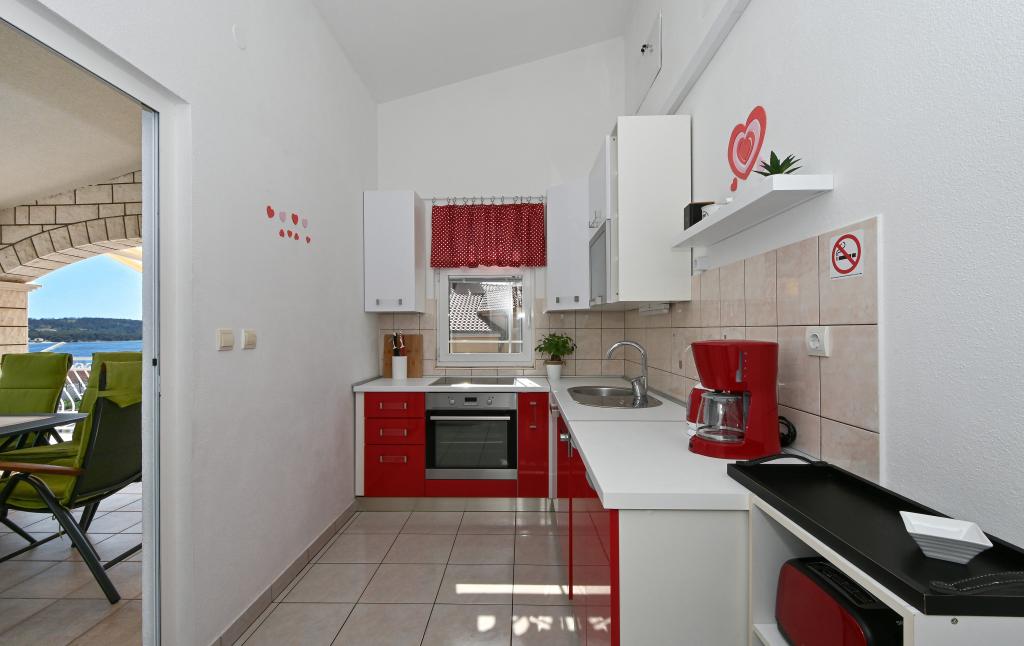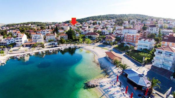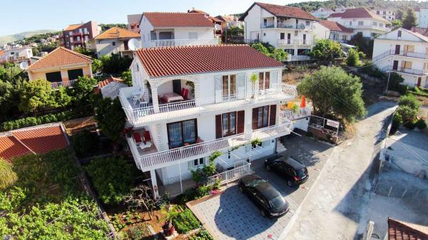 Villa Ljube este situată în imediata vecinătate a taberei auto Rožac, la o distanță de 1,5 km de centrul orașului Trogir. Capacitatea totală a vilei Ljuba este de 15 persoane. Apartamentele sunt dotate cu SAT TV și Internet WLAN. Oaspeții pot folosi grătarul din cadrul proprietății. La primul etaj al vilei se afla un apartament mare cu vedere frumoasa la mare. Apartamentul are un balcon spatios cu vedere la mare. La etajul doi se afla un apartament de design modern cu o terasa spatioasa ce poate gazdui 8 persoane. Proprietarii casei locuiesc la parter și sunt întotdeauna gata să răspundă la toate întrebările și să ofere asistență. Balconul oferă o vedere frumoasă asupra mării și a întregului golf. Vila Ljube se afla la 150 m de plaja.Vila este situata pe o strada laterala linistita, fara prea mult zgomot si trafic.