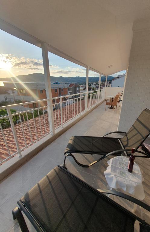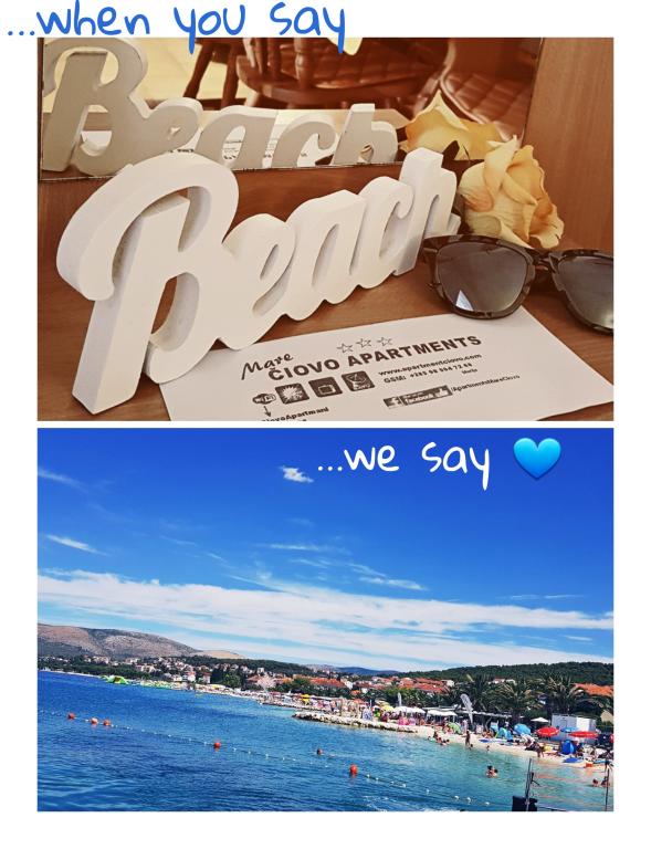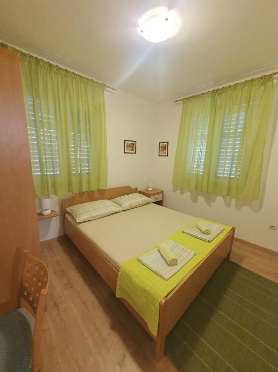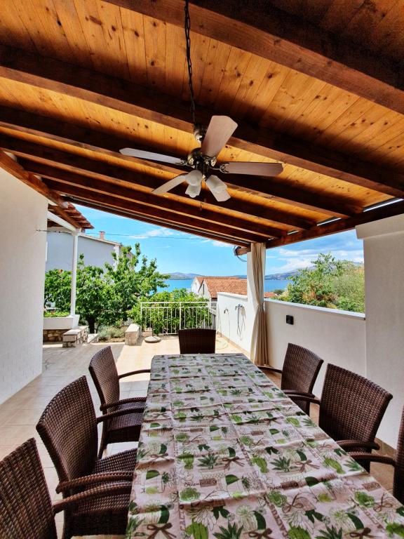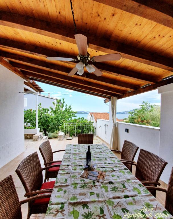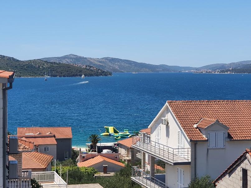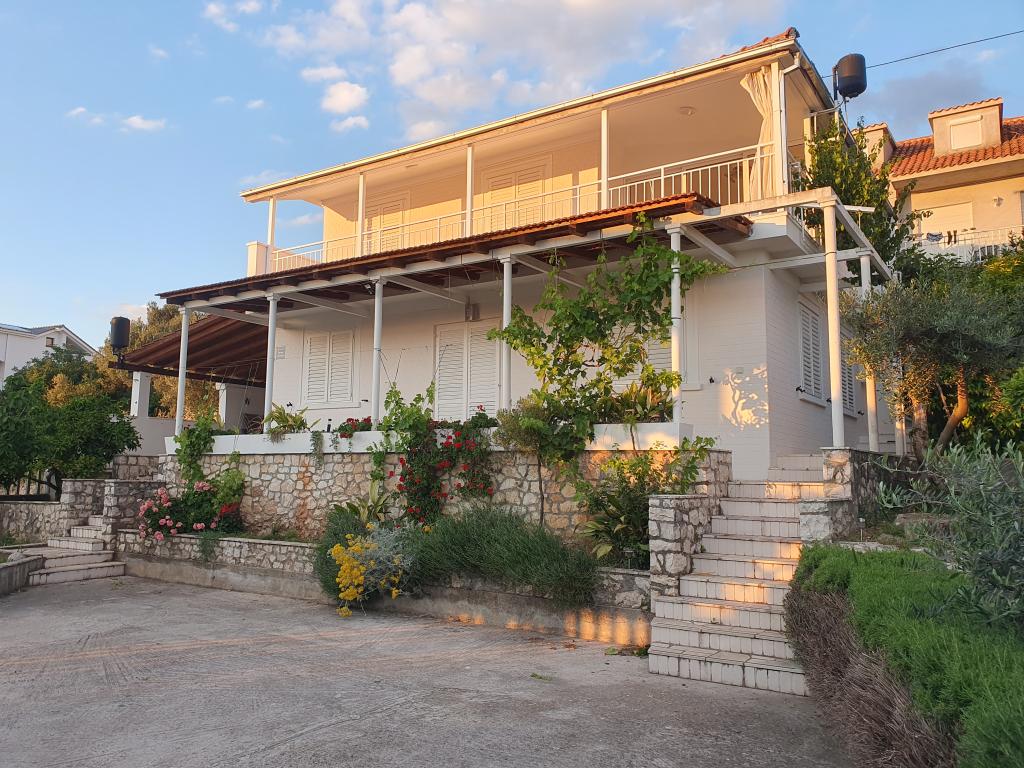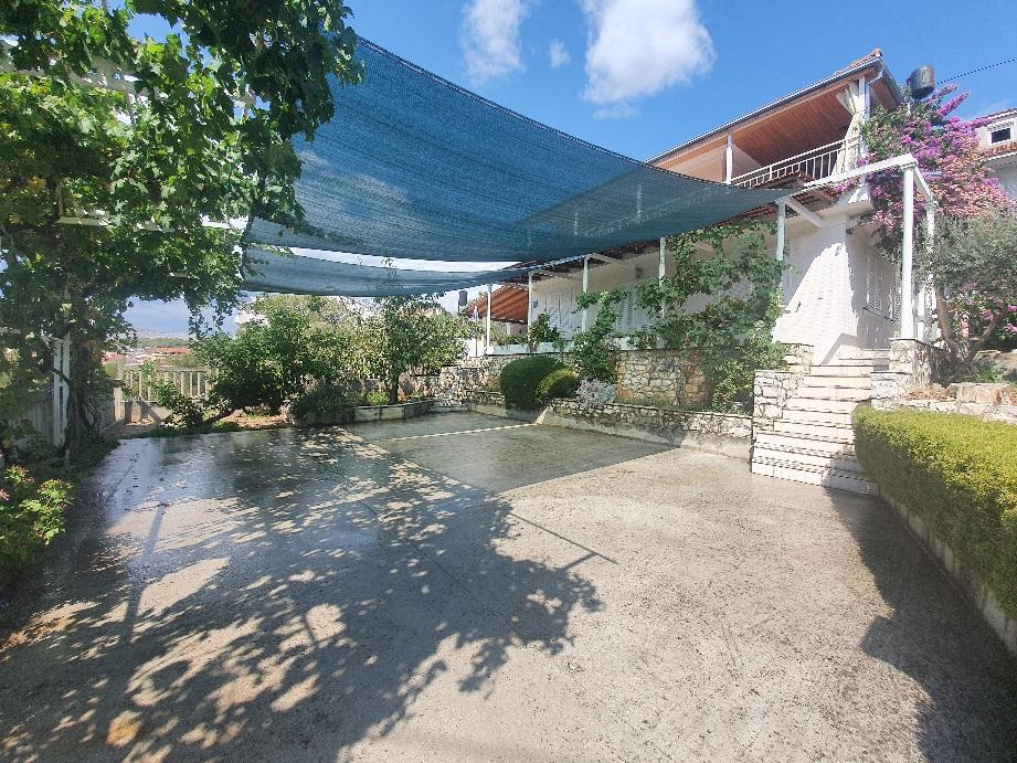 Apartamente complet utilate într-o casă din Okrug Gornji. Distanța de plajă este de 200 m (aproximativ 3 minute de mers pe jos), iar centrul este de 400 m. Facilități plajă: cafenea-bar, restaurante, magazine, bancomate, jet-ski, închiriere barcă, închiriere scutere, autobuz și barcă pentru transportul la Trogir, informații turistice etc. APARTAMENT 1 (A6+2): Întregul parter al casei vă stă la dispoziție, care include 3 dormitoare (camere cu paturi duble), un living cu aer condiționat (conține un pat suplimentar - canapea), bucătărie, baie și toaletă suplimentară. În curtea spațioasă, cu o terasă elevată, vă puteți bucura de grătar, duș în aer liber sau pur și simplu de vedere la mare. APARTAMENT 2 (A4): Apartament recent adaptat, la primul etaj al casei, cu o terasă spațioasă și o vedere frumoasă la mare. Acesta conține 2 dormitoare (paturi duble), un living cu aer condiționat, o bucătărie „open-space” complet utilată și o baie. 4 locuri de parcare sunt prevăzute în curte.